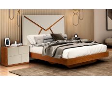 Cama de casal de design moderno com uma cabeceira original em pele e estrutura de madeira folheada a nogueira natural e pernas de madeira MDFDimensões em cmC 170 P 215 A 112Prazo de Entrega10 a 20 dias