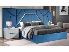 Cama de casal de design moderno com uma cabeceira original e estrutura em tecido e pernas em aço inoxidávelDimensões em cmC 231 P 239 A 104Prazo de Entrega10 a 20 dias