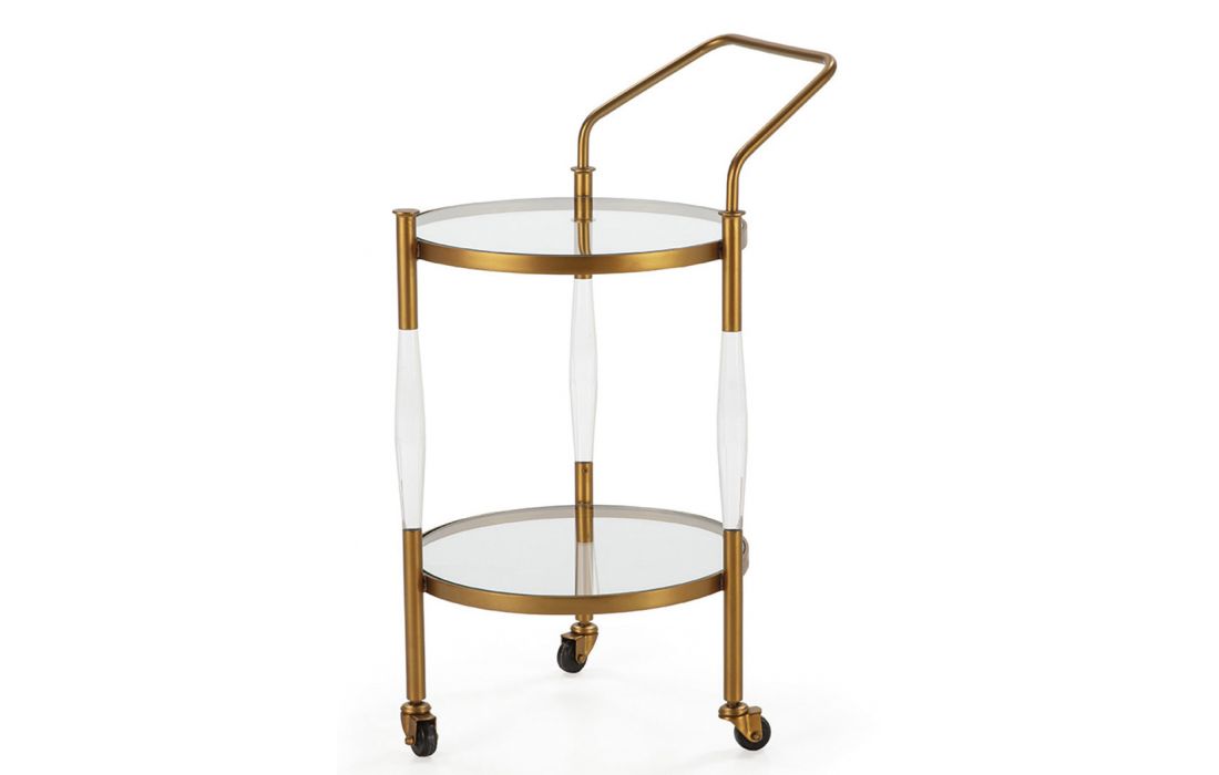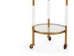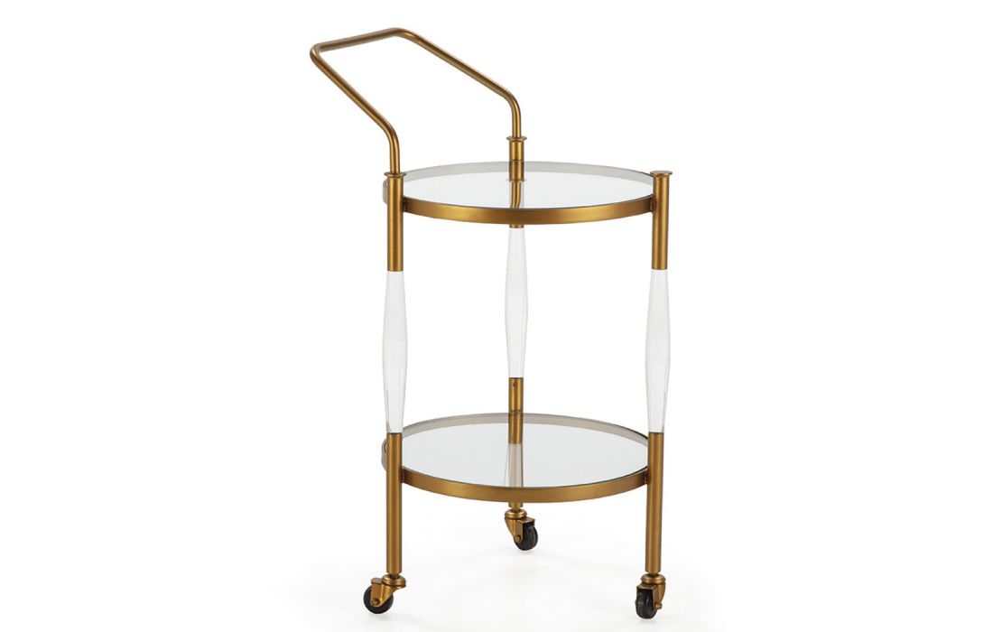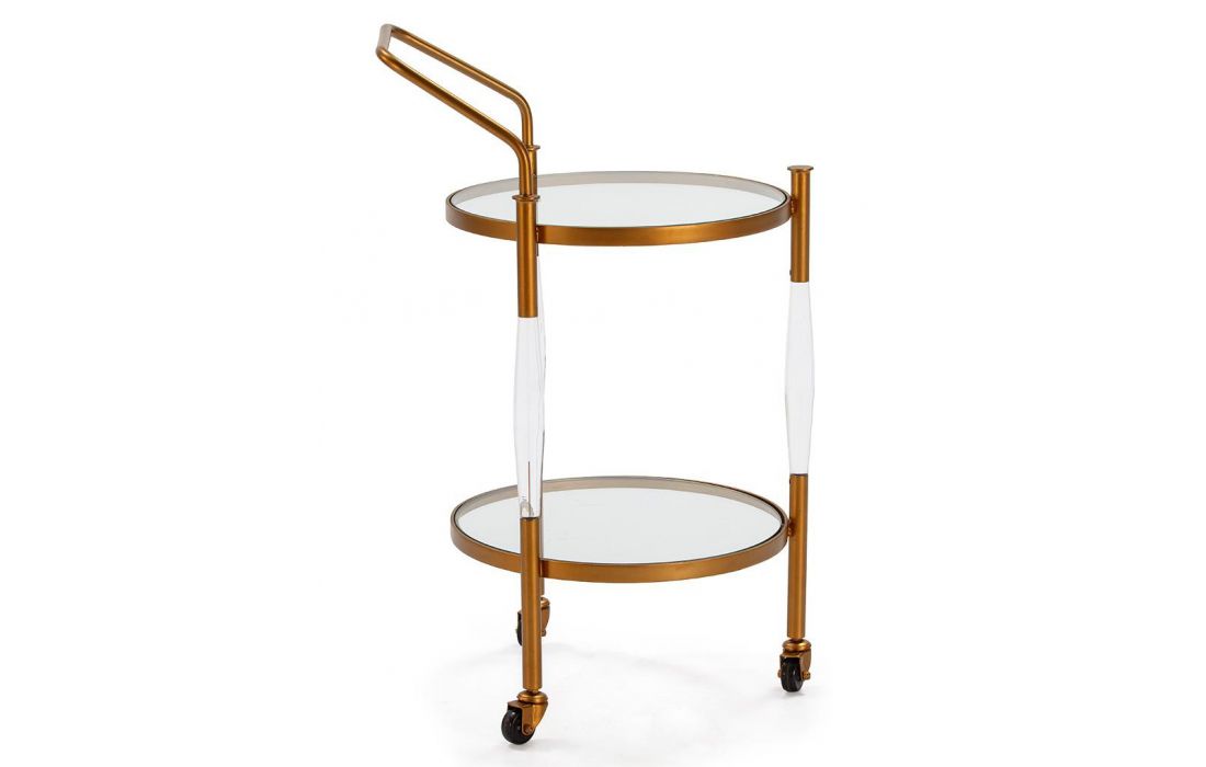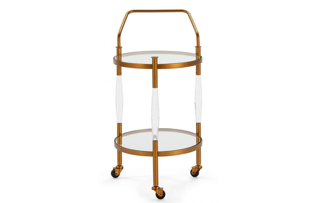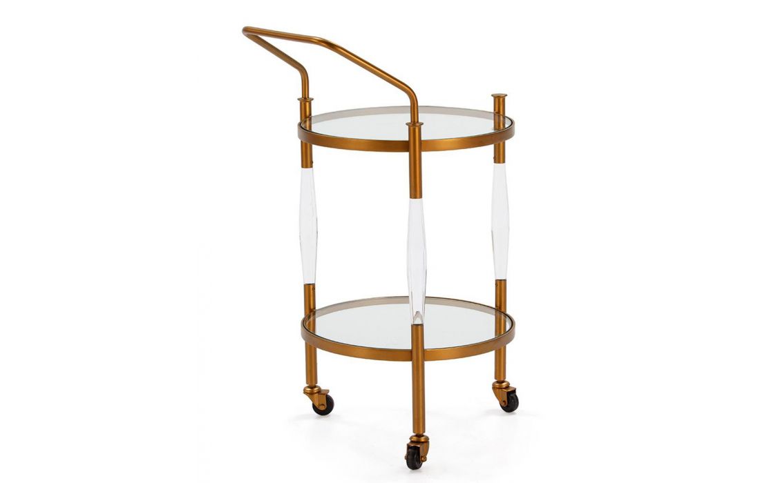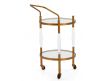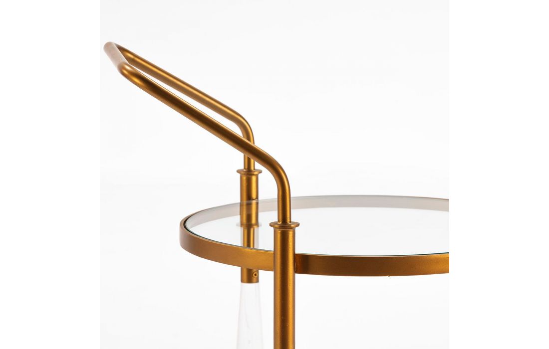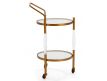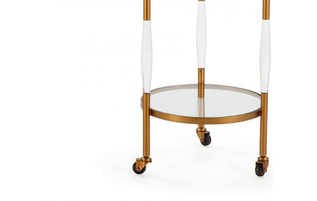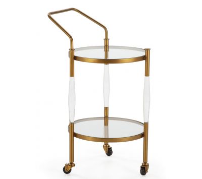 Carrinho de chá com estrutura de metal dourado e tampos em cima vidro e em baixo mármore branco.Dimensões em cmL 82 P 46 A 76Prazo de Entrega10 a 15 dias