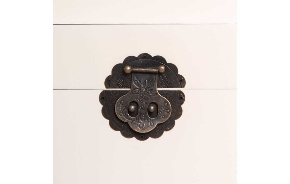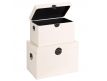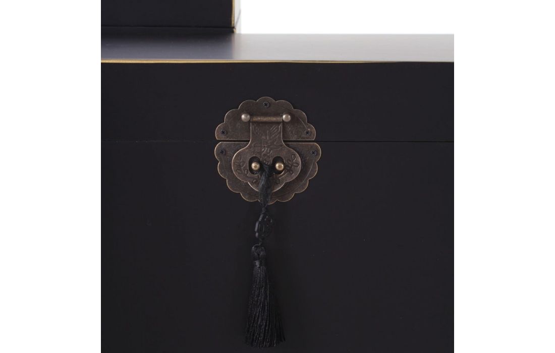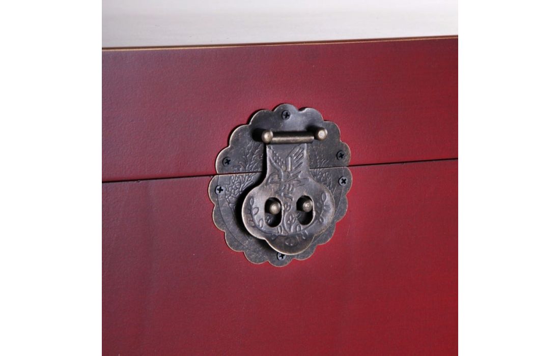 Baú em MDF c/ puxadores em metal dourado, disponível em 3 cores, preto, branco e vermelho.