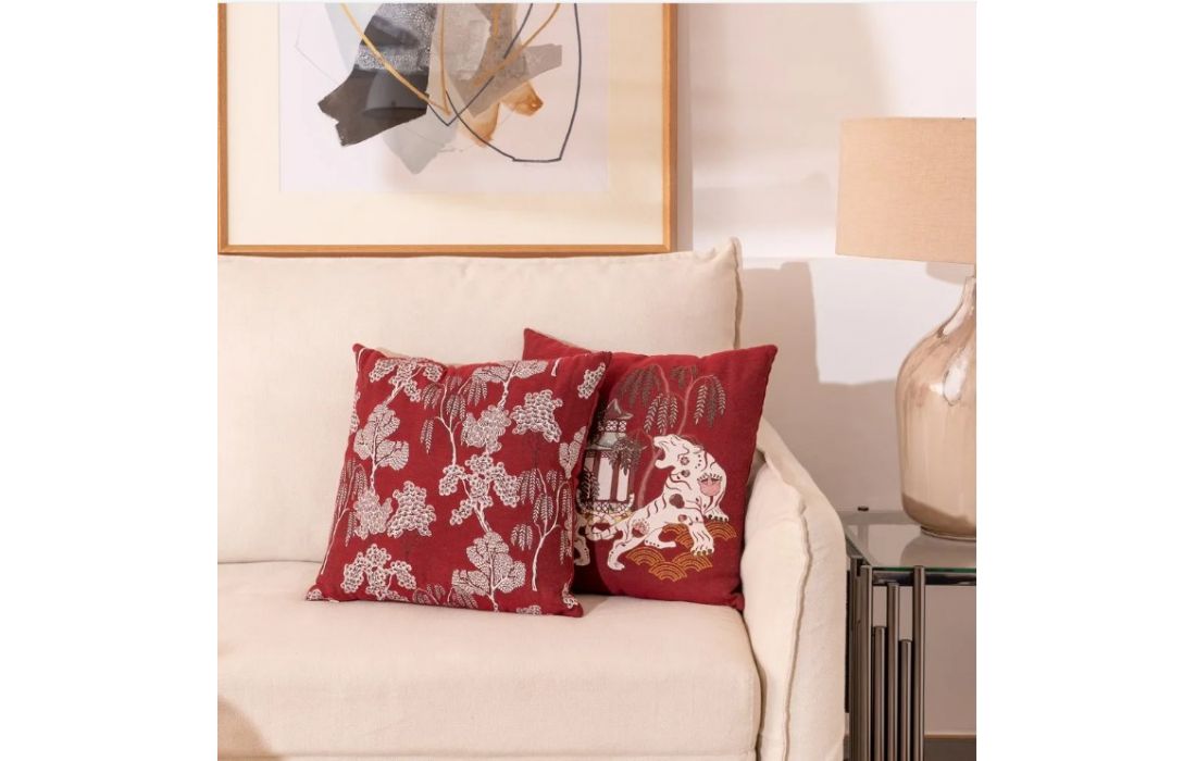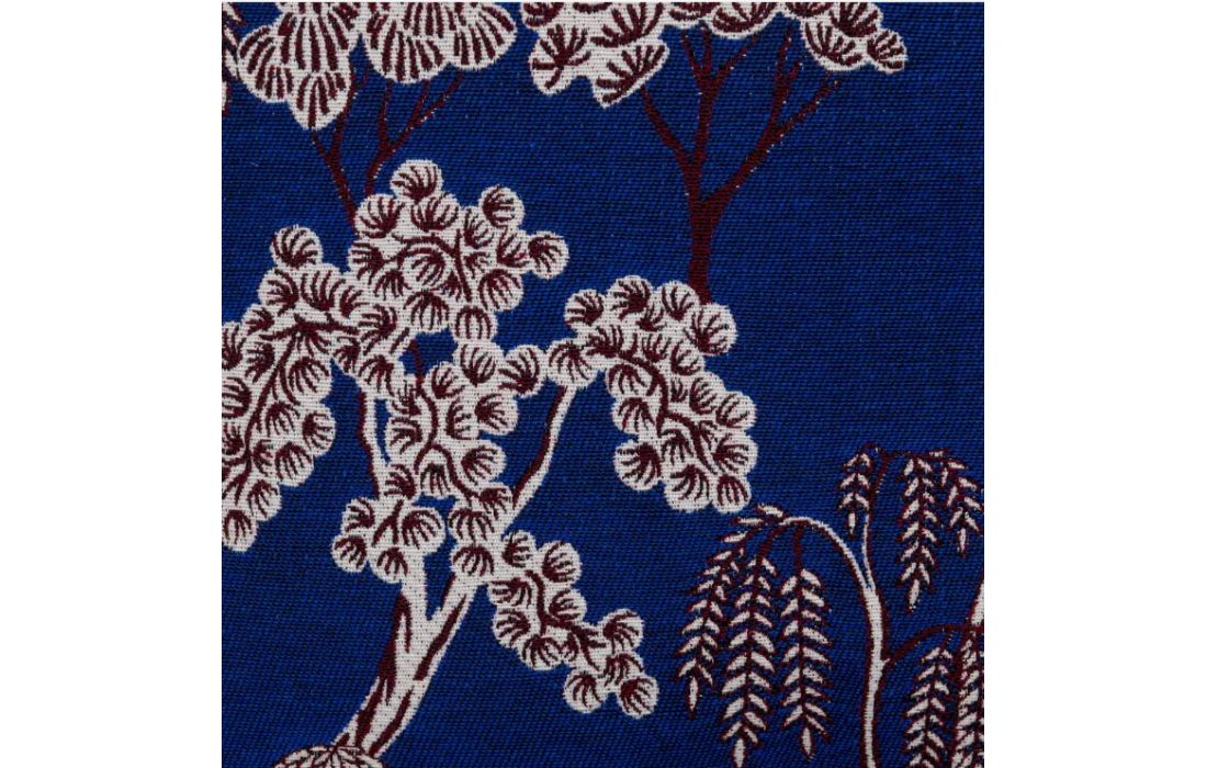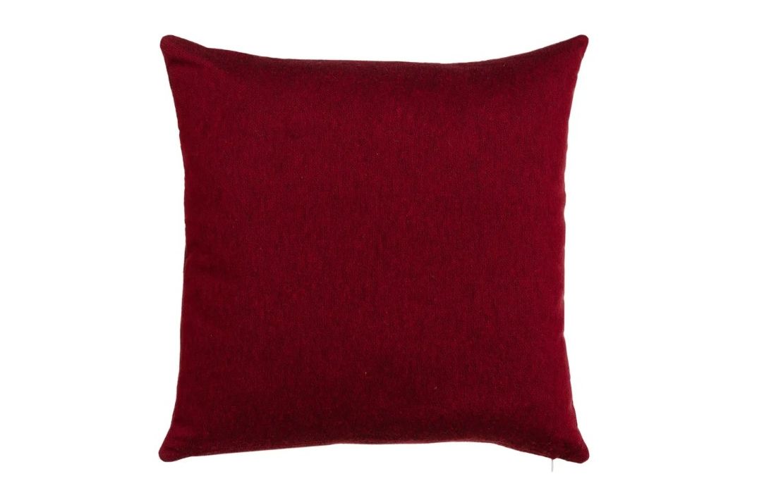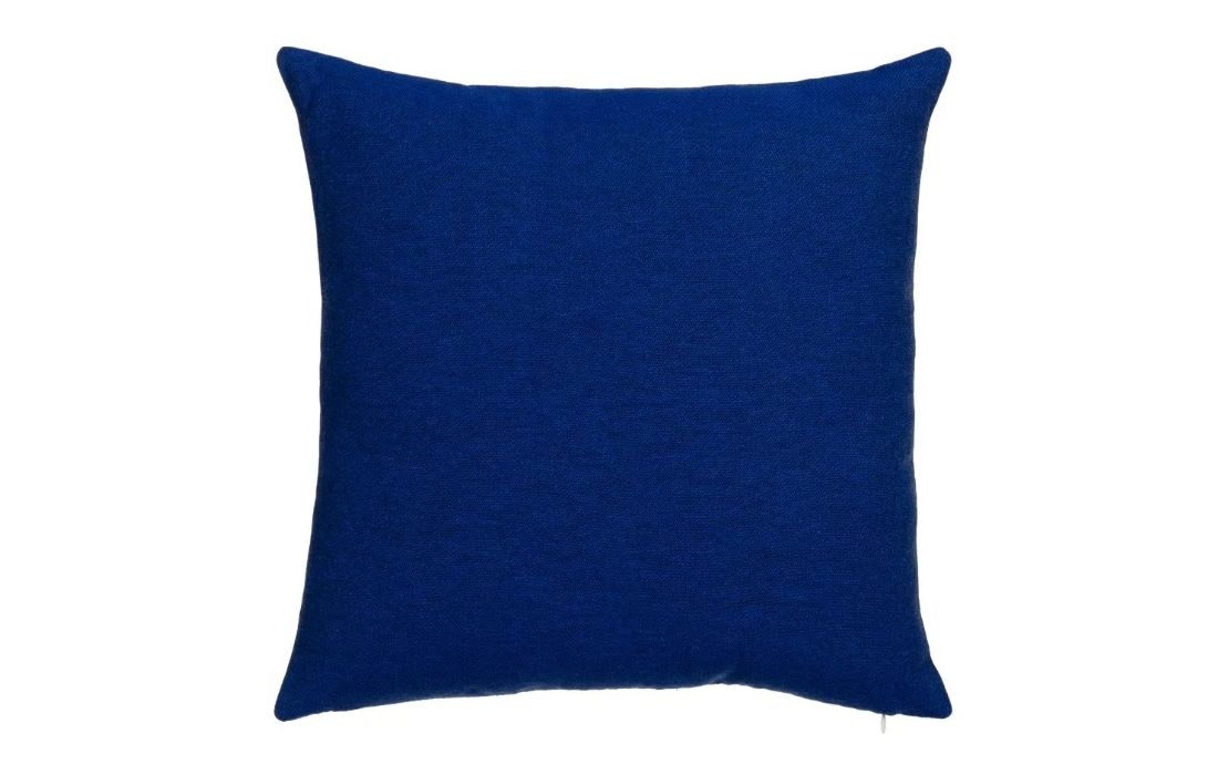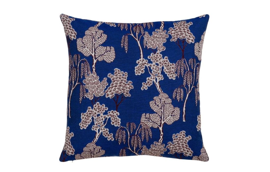 Almofada em tecido algodão, de cor azul, vermelho e verde.