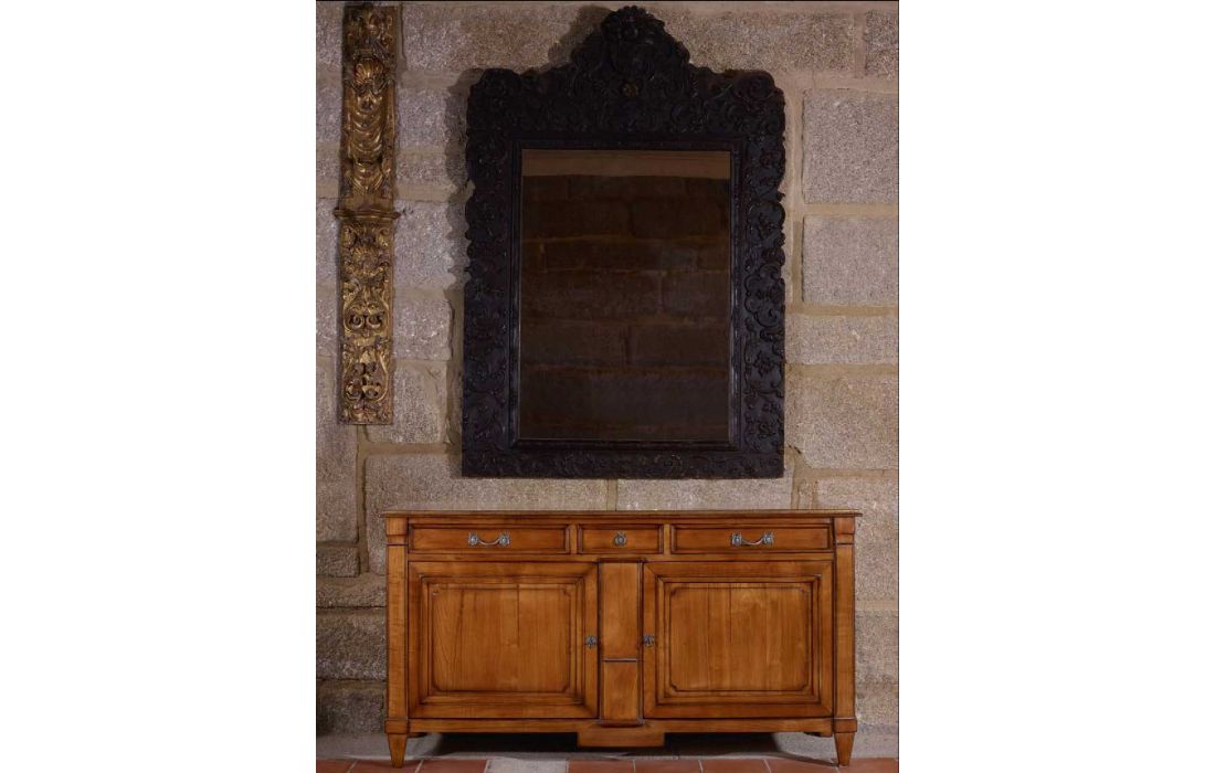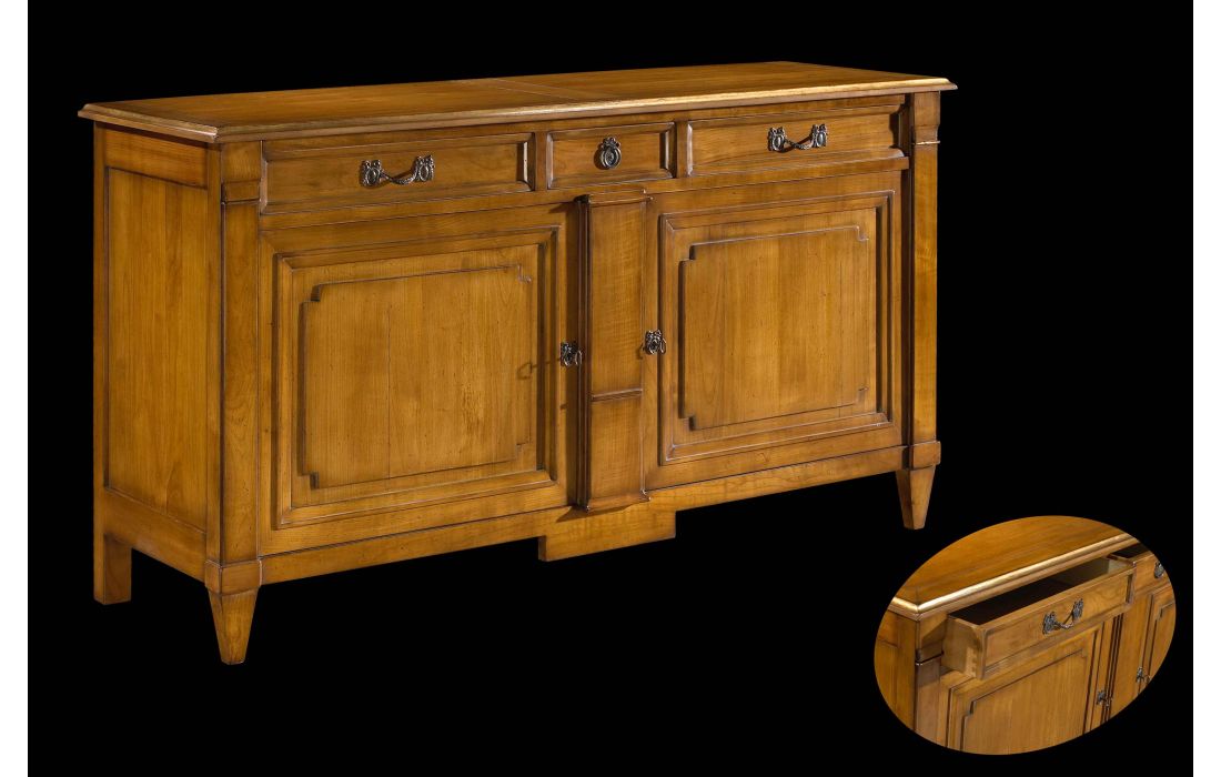 Aparador com 2 portas e 3 gavetas, design provençal e pormenor em folha de ouro, com possibilidade de vários acabamentos.