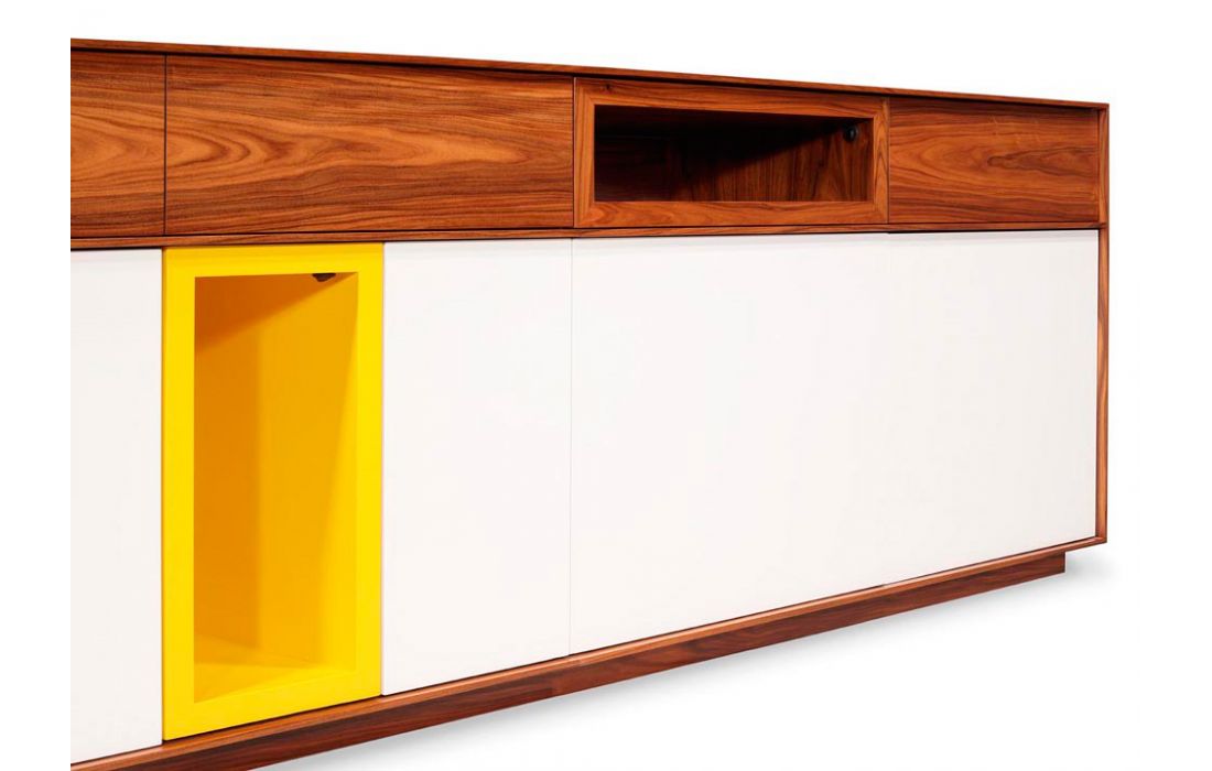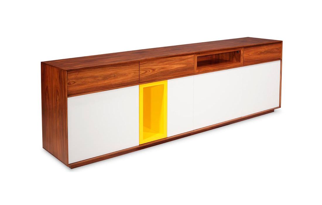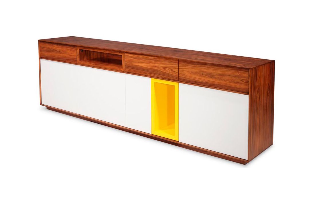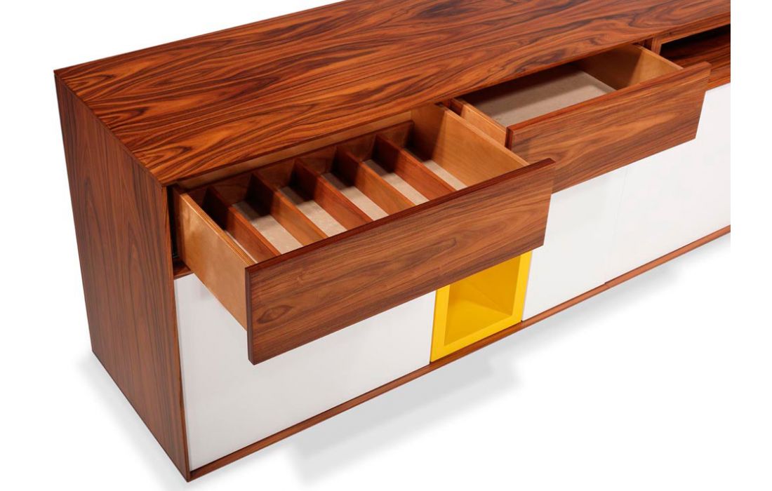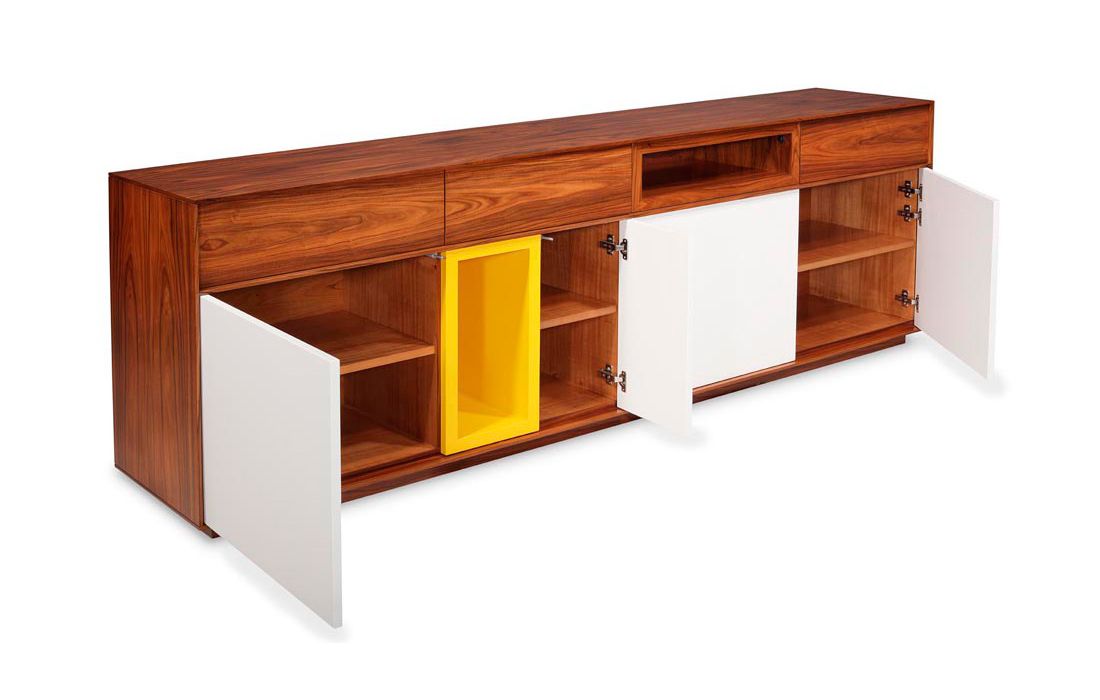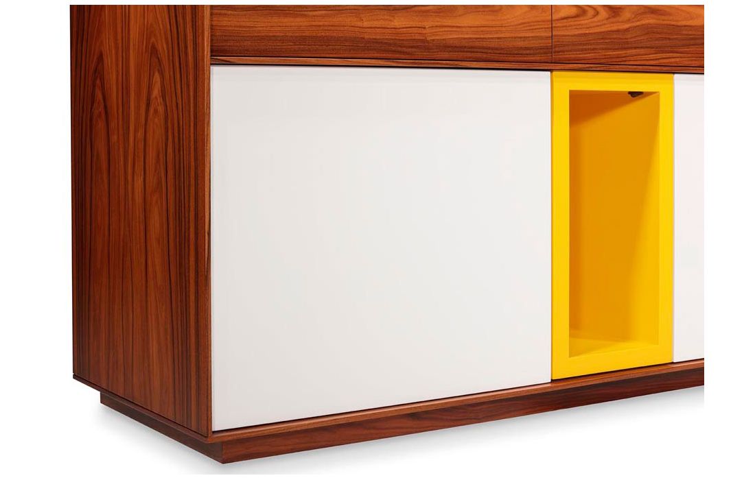 Aparador com 4 portas e 3 gavetas, estrutura nos vários acabamentos possíveis.
