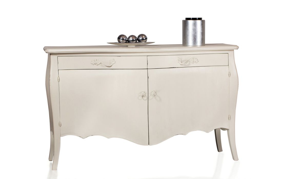 Aparador clássico com 2 portas e 2 gavetas, estrutura em madeira.