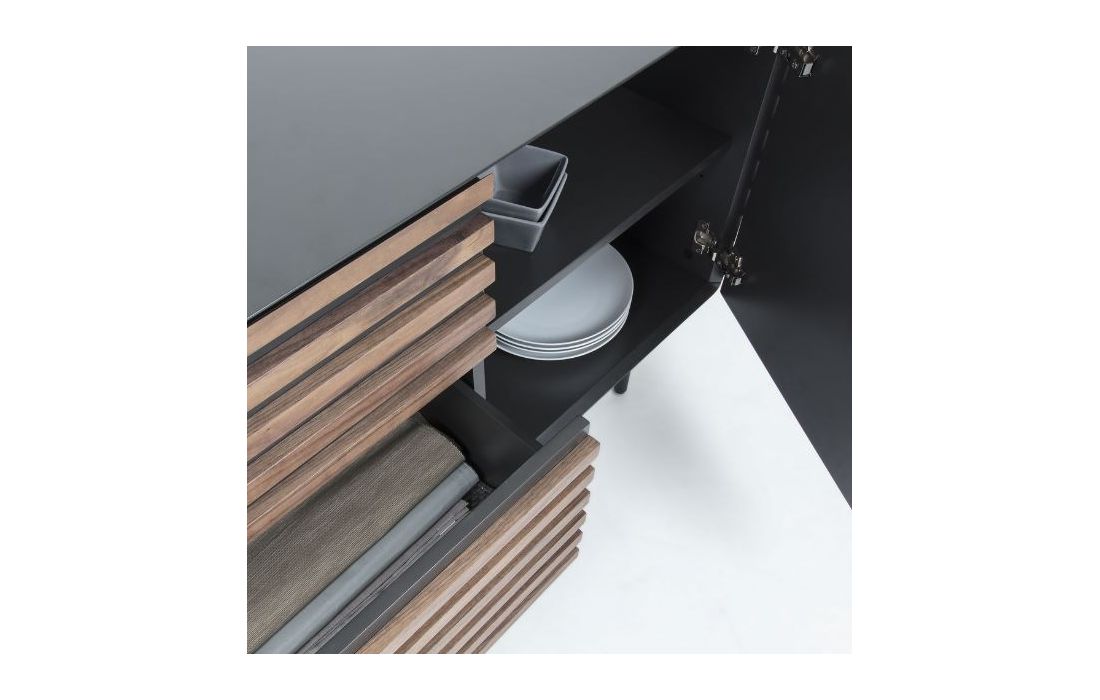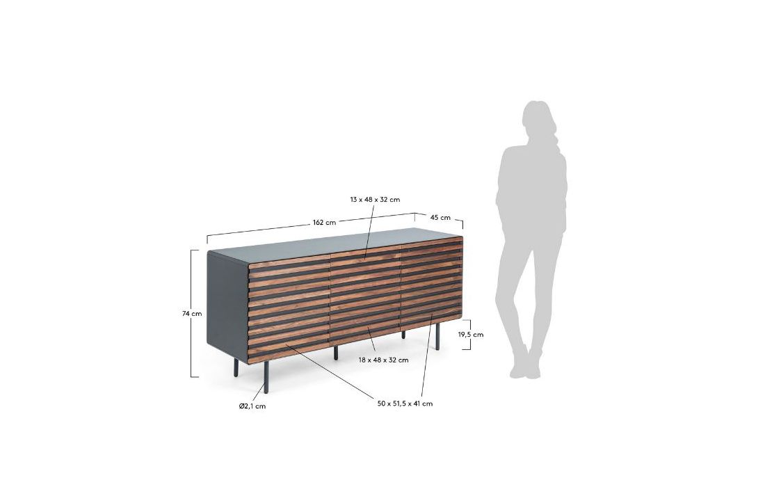 Especificações do Produto Folha de nogueia / MDF / Metal Não fazemos qualquer alteração ao produto Manutenção e Limpeza Limpar com um pano seco Para tirar manchas deve usar um pano húmido e de seguida passar um pano seco Legenda de medidas (L) Largura (P) Profundidade(A) Altura