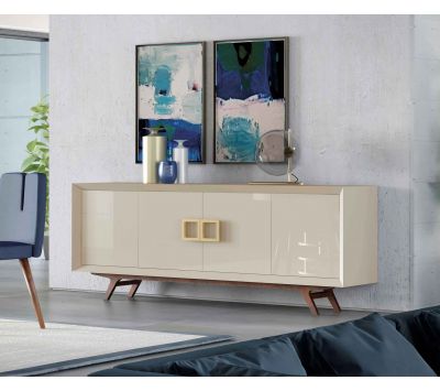Aparador c/ estrutura em mdf e folha de madeira, composto por 4 Portas e 1 Gaveta interior c/ Abertura "Tic-Tac". Dimensões em cm C 220P 50 A 85 Prazo de Entrega 30 a 45 dias