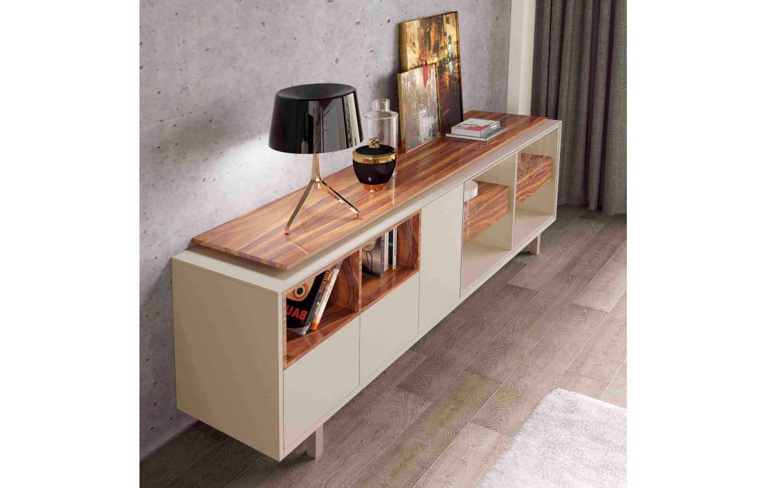 Aparador c/ estrutura em mdf e folha de madeira, composto por 3 Portas e 2 Gaveta interior c/ Abertura "Tic-Tac". Dimensões em cm C 240P 50 A 85 Prazo de Entrega 30 a 45 dias