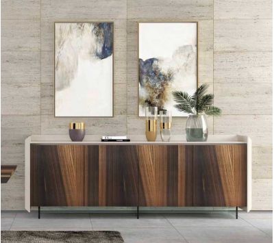 Aparador c/ estrutura em mdf e folha de madeira, composto por 4 Portas e 2 Gavetas em Abertura "Tic-Tac". Dimensões em cm C 220P 52 A 88 Prazo de Entrega 30 a 45 dias