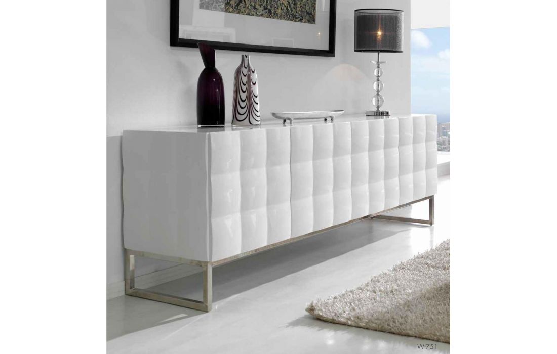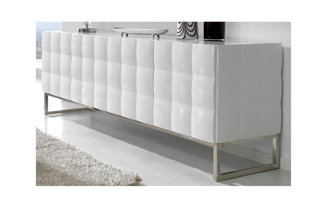 Aparador em lacado branco alto brilho c/ pés de inox polido.