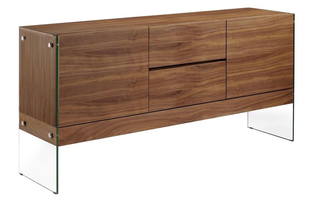 Aparador de design moderno com estrutura em MDF de nogueira natural e pés em vidro com 2 gavetas e 2 portasDestinatário :