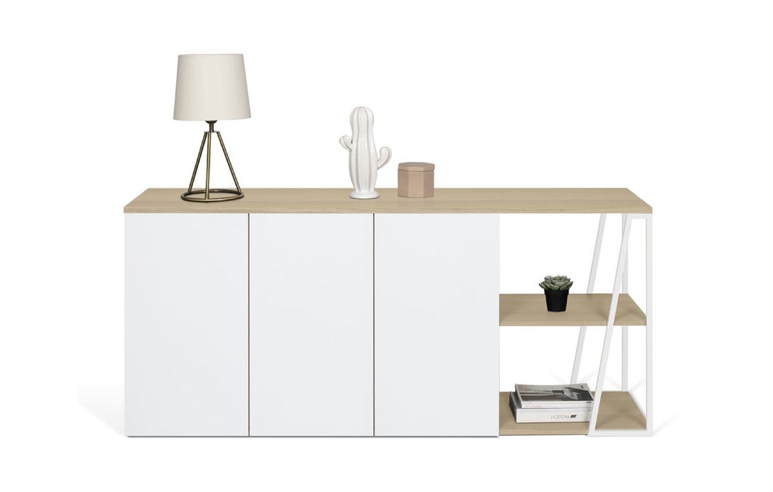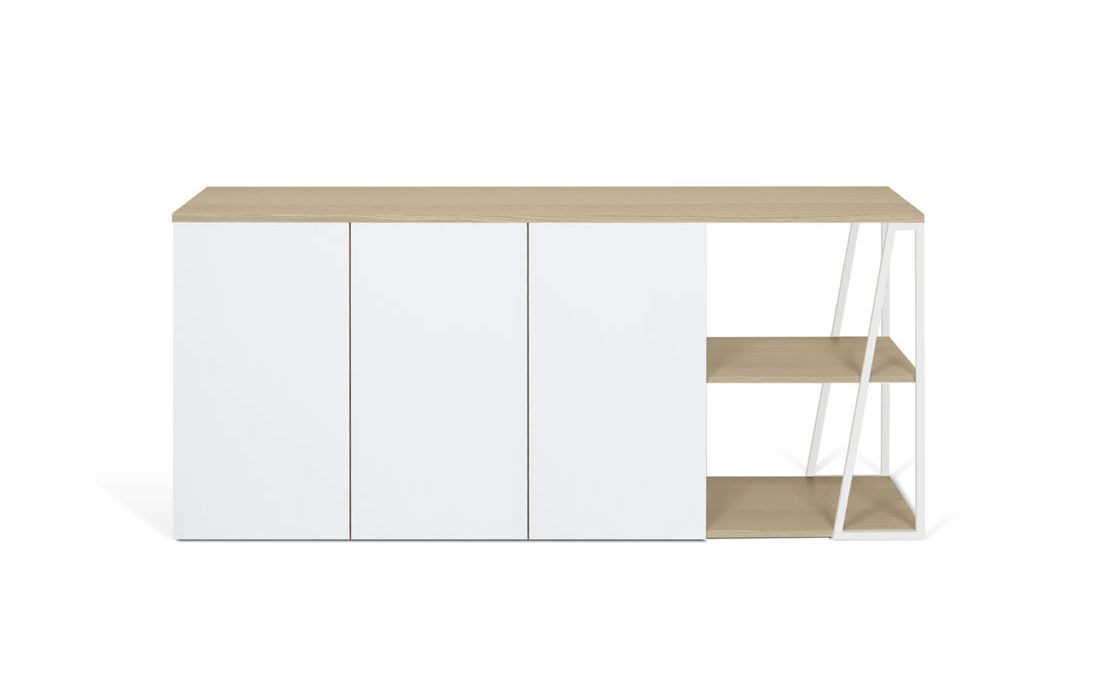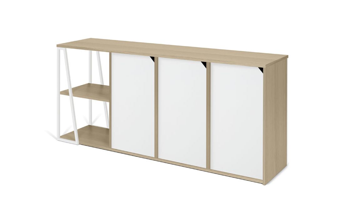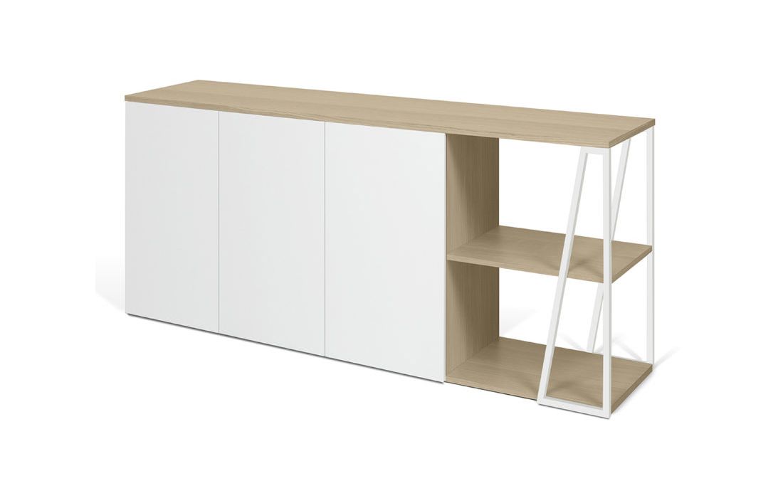 Aparador de 3 portas com estrutura folheada a carvalho e frentes lacado branco.