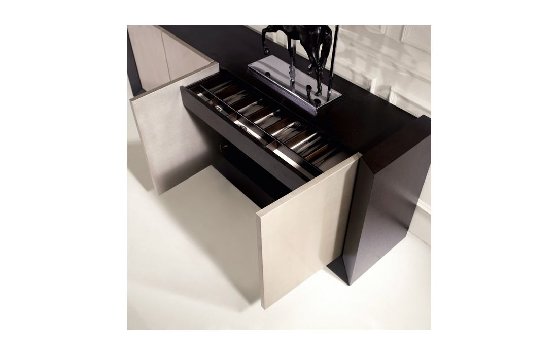 | O interior do aparador é composto por 2 gavetas e 2 prateleiras | ||||||||