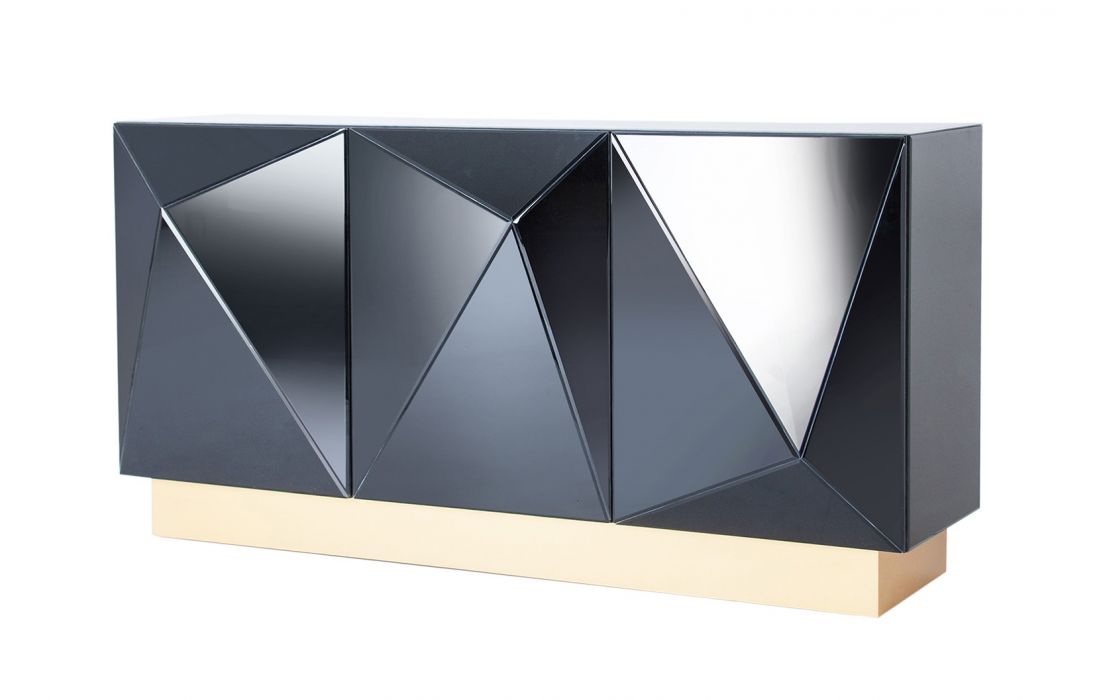 APARADOR EM COR DOURADO/PRETO, ESTILO ART DECO. FEITO DE ESPELHO, COMBINADO COM AÇO.EM BRANCO/OURO BRILHANTE, ESTILO ART DECO. FEITO DE ESPELHO, COMBINADO COM AÇO.Destinatário :