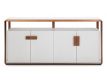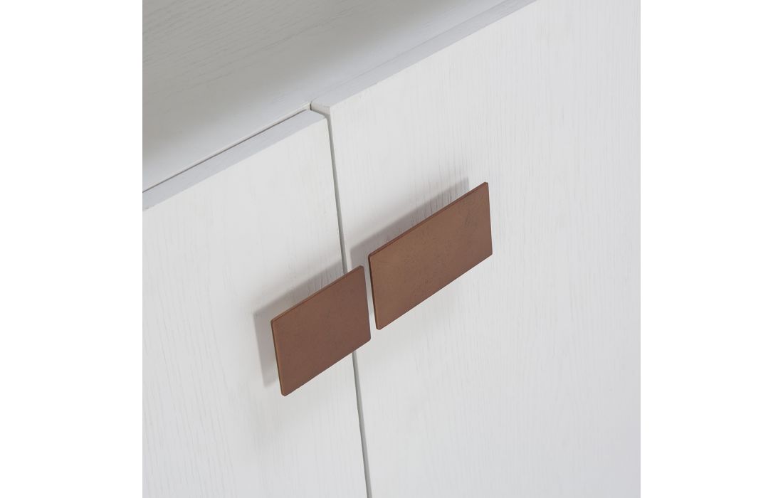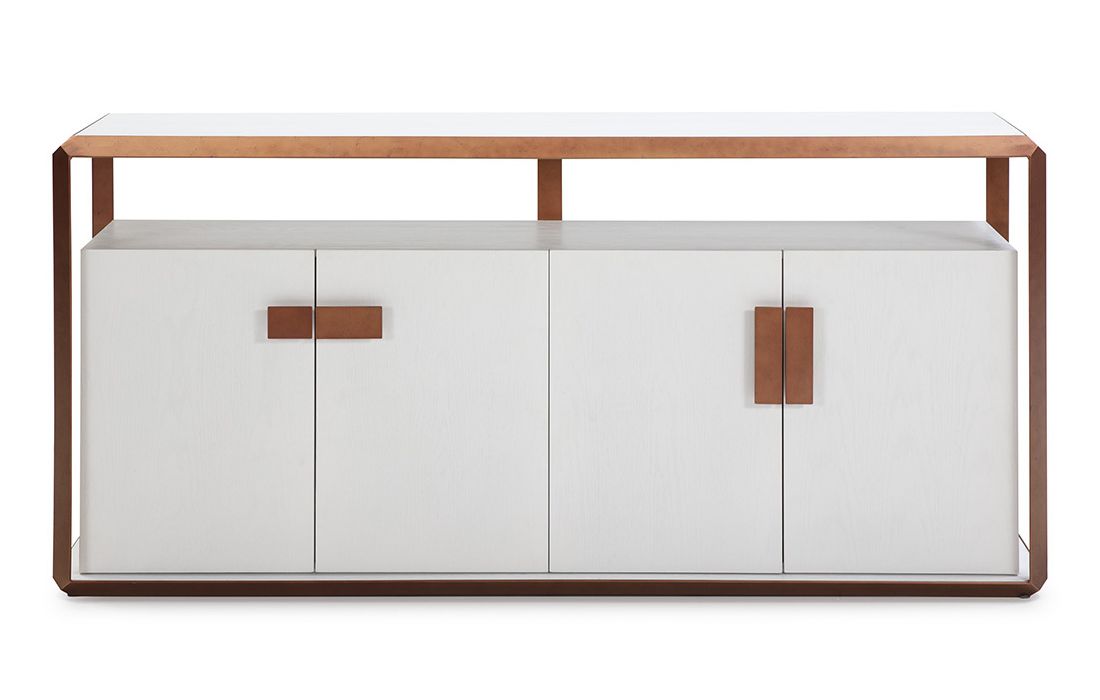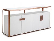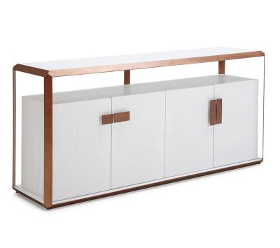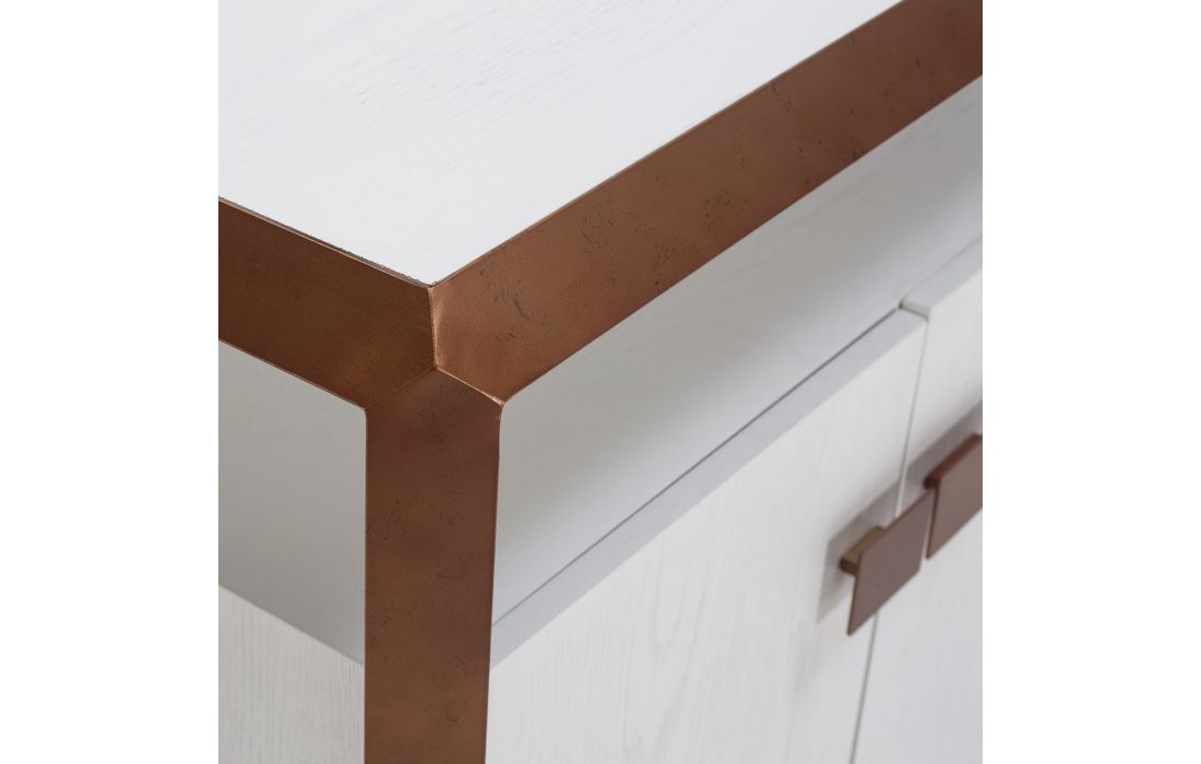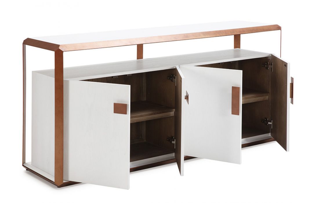 Aparador com 4 portas em madeira cor branca e metal cobre