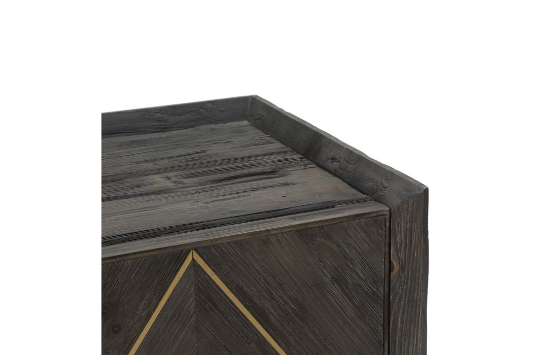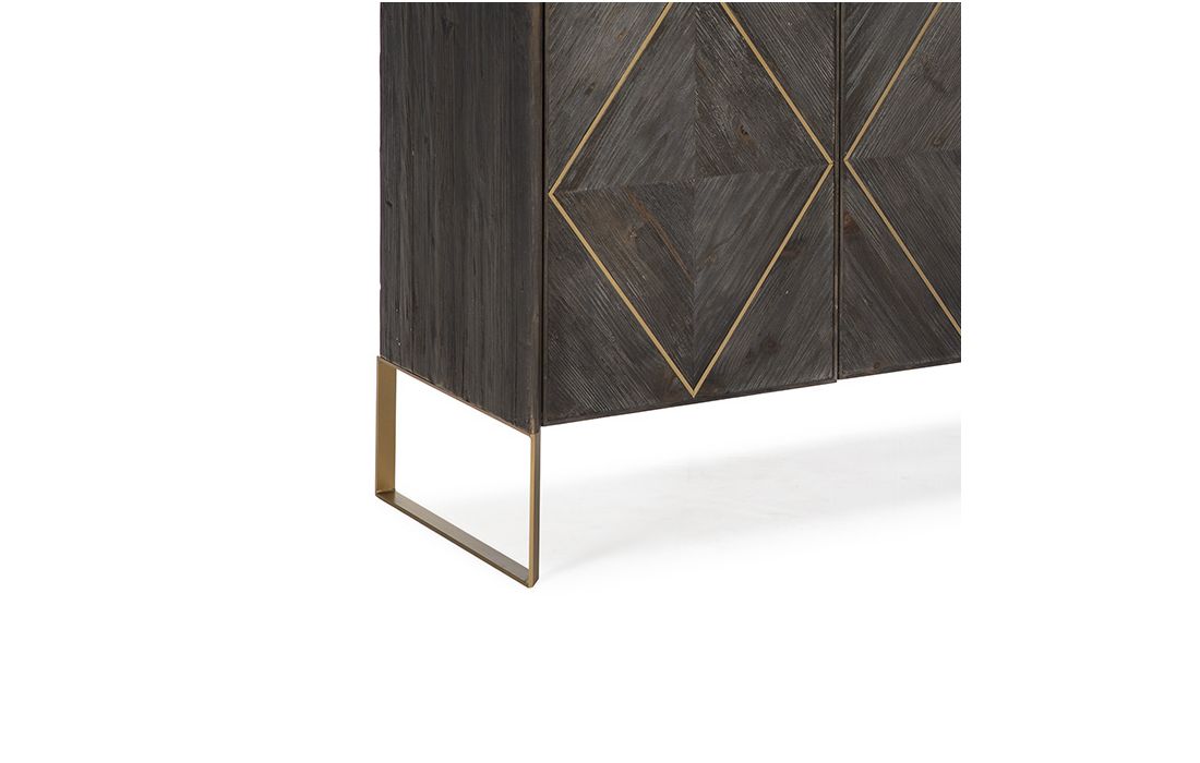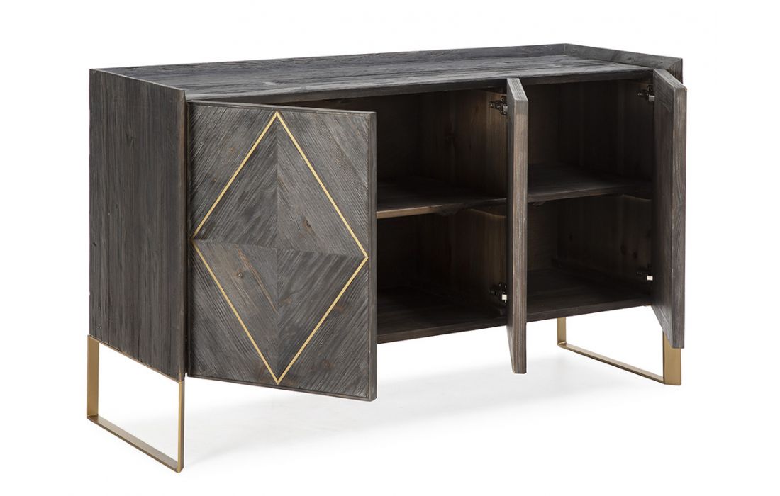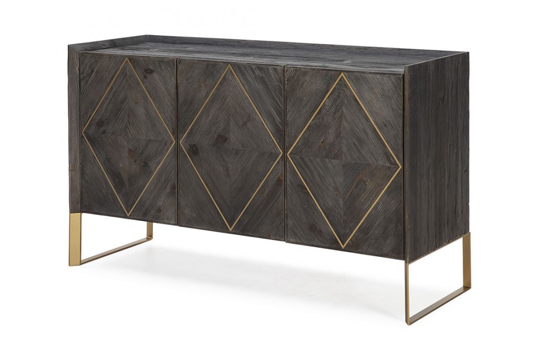 Aparador com 3 portas em madeira cor cinza e metal dourado