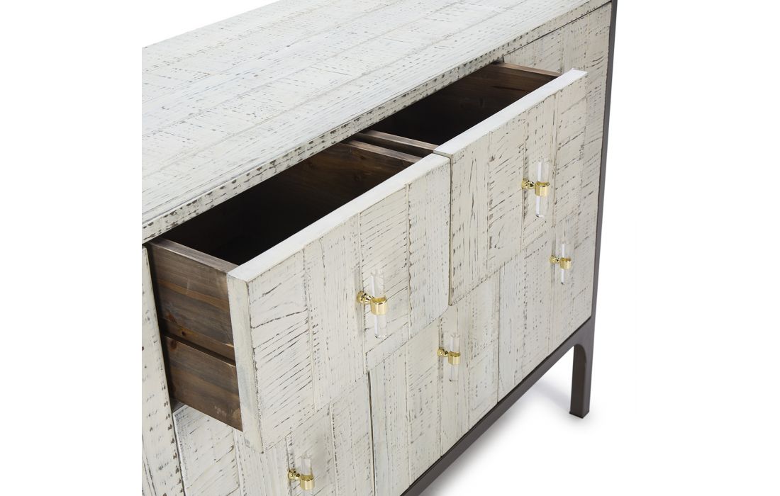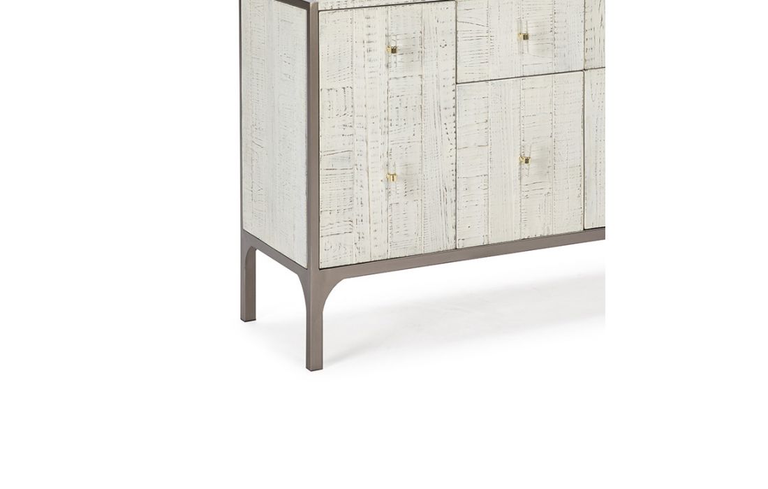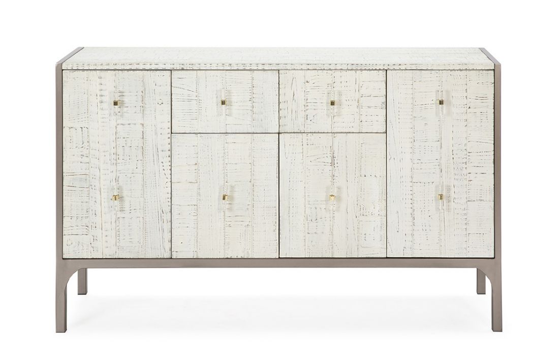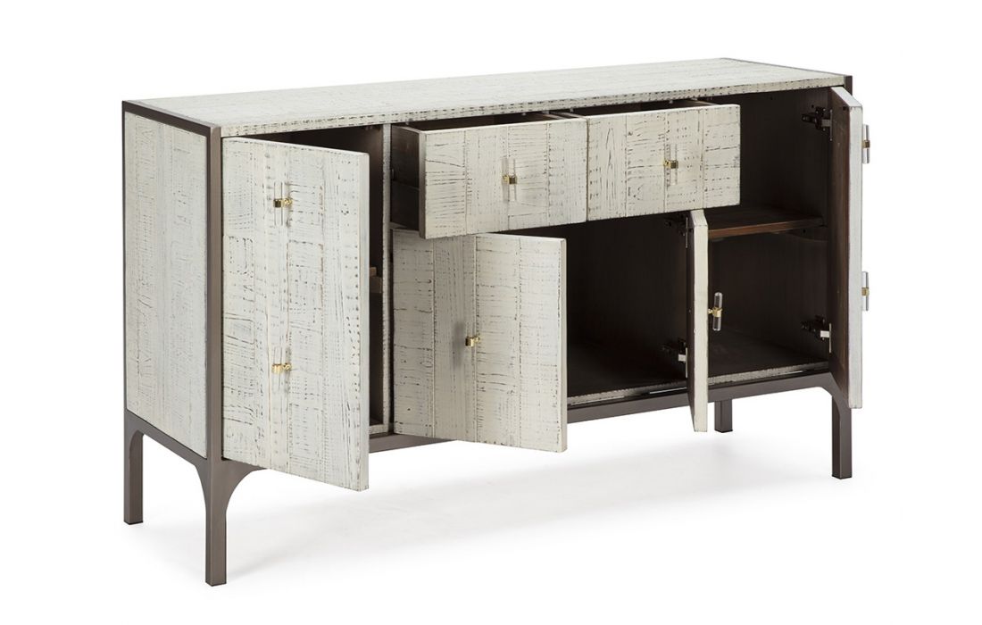 Aparador com 4 portas e 2 gavetas em madeira cor branca e metal castanho