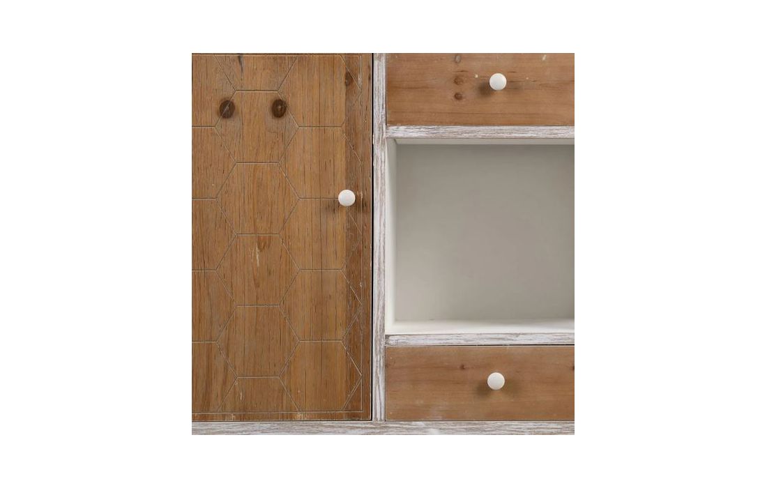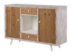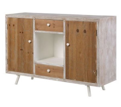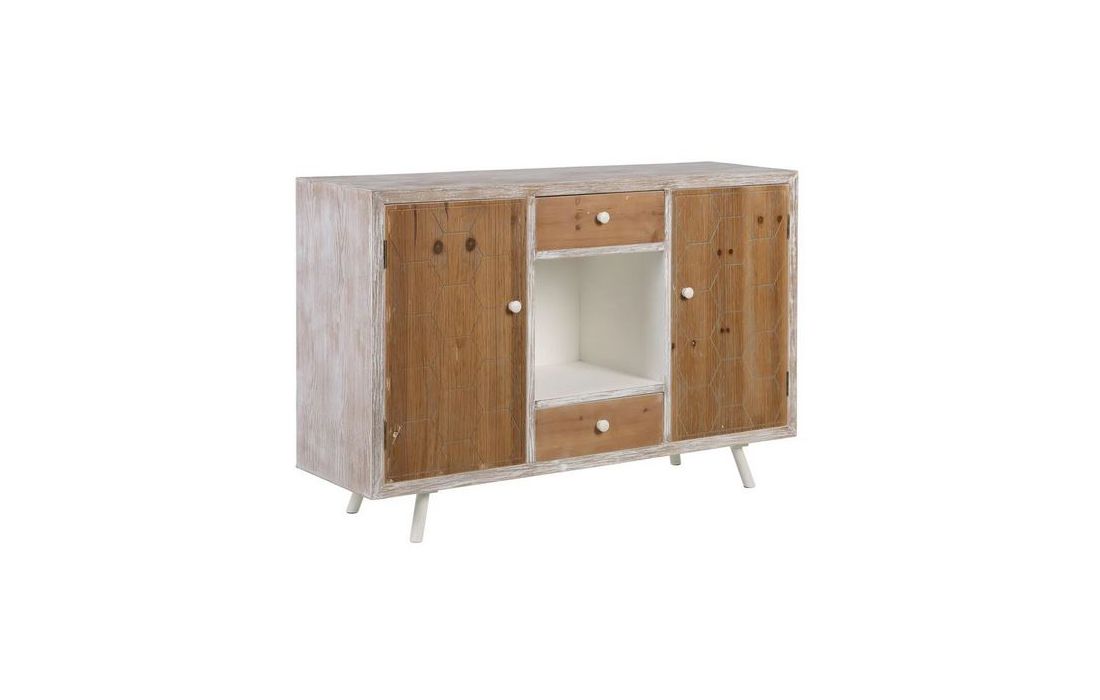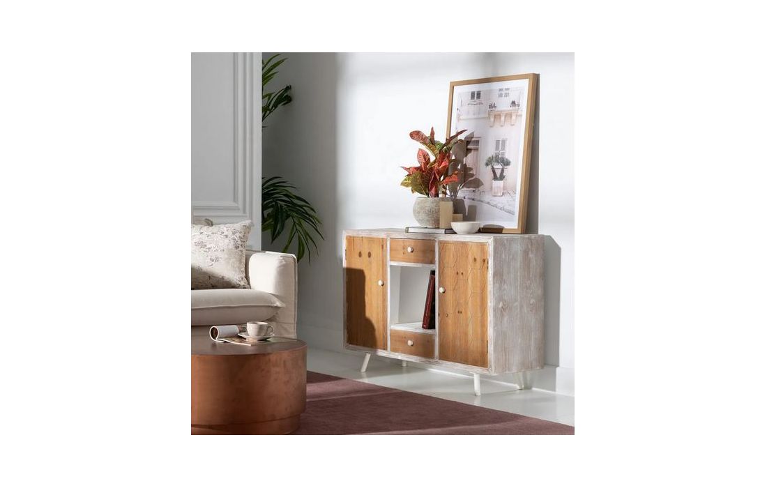 Aparador com 2 portas e 2 gavetas em madeira de abeto e estrutura em MDF pintado de branco