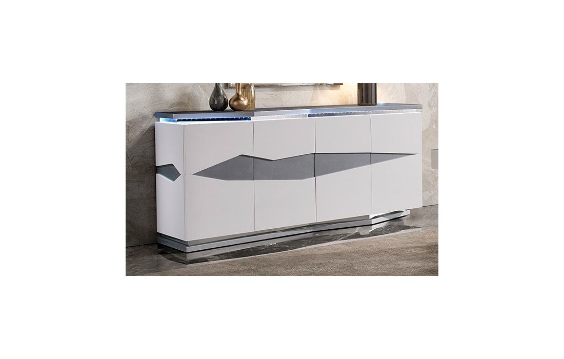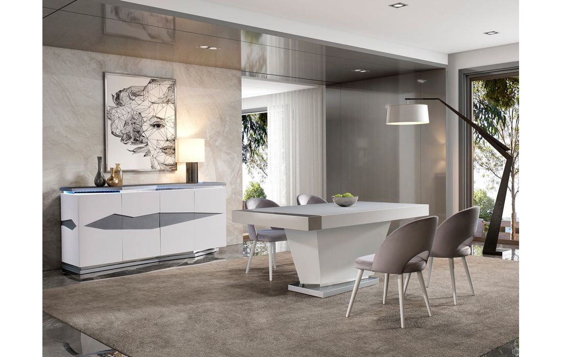 Lacado branco mate com pormenores em cinza metalizado