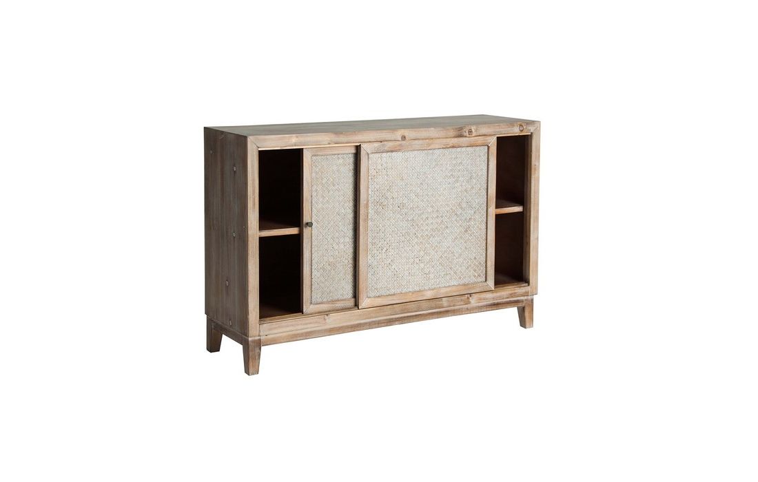 Aparador feito em madeira de pinho com MDF e madeira compensada em branco e na sua cor natural.