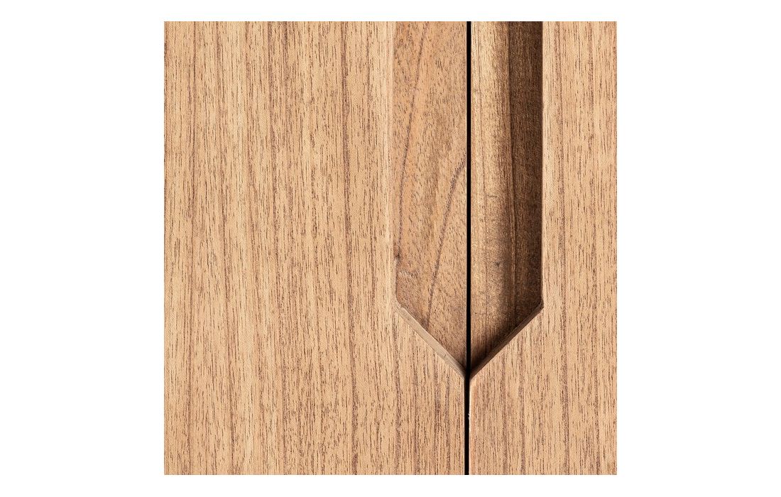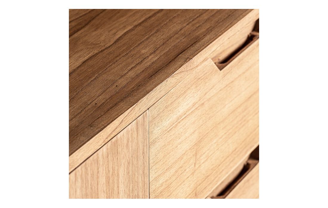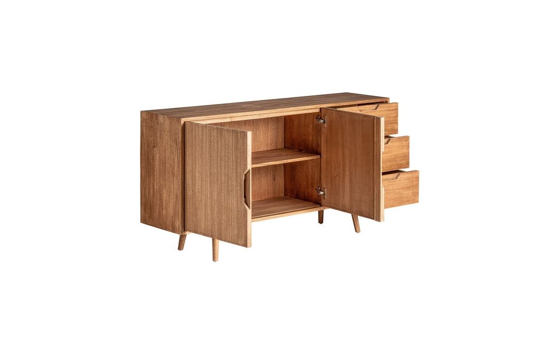 Aparador feito em madeira mindi na sua cor natural, composto por três gavetas e duas portas.