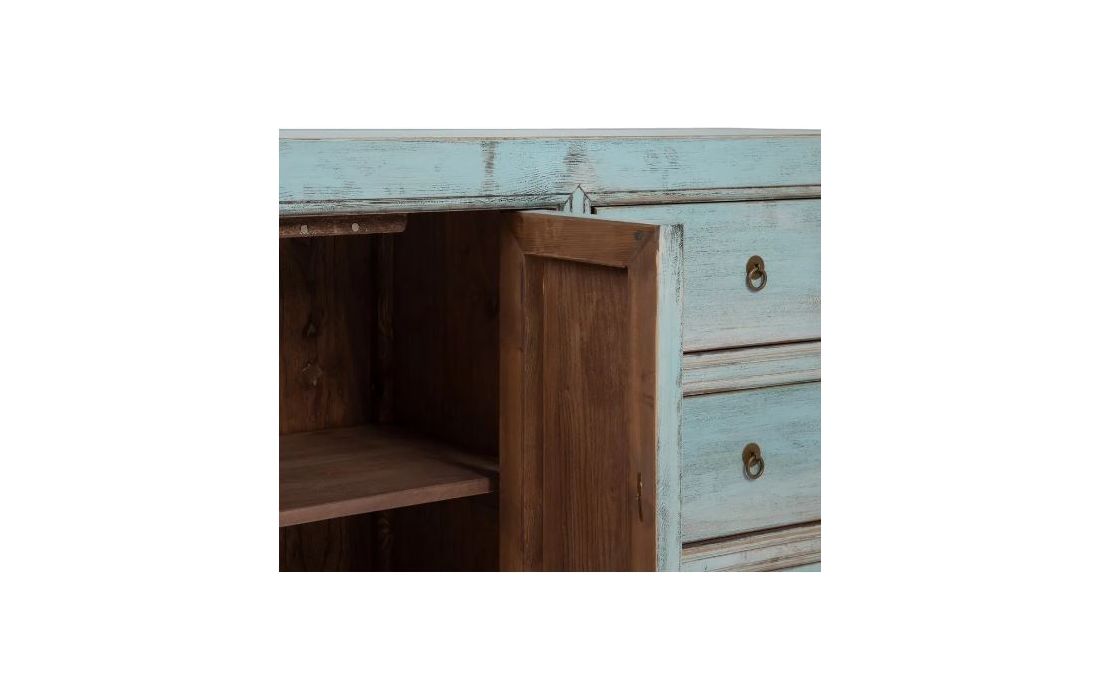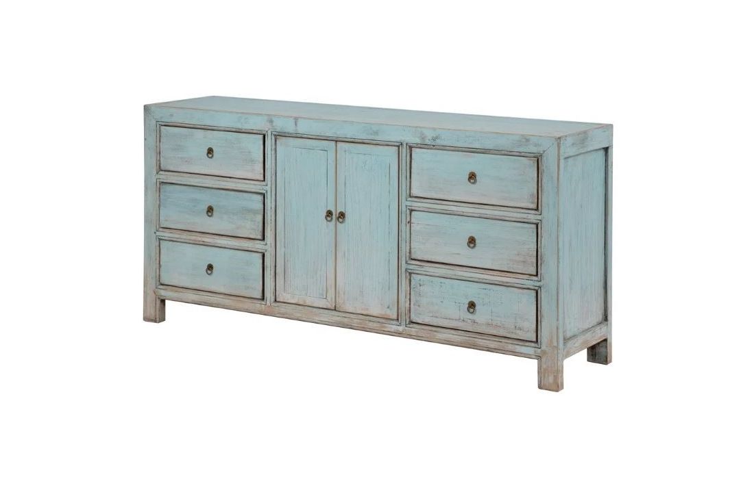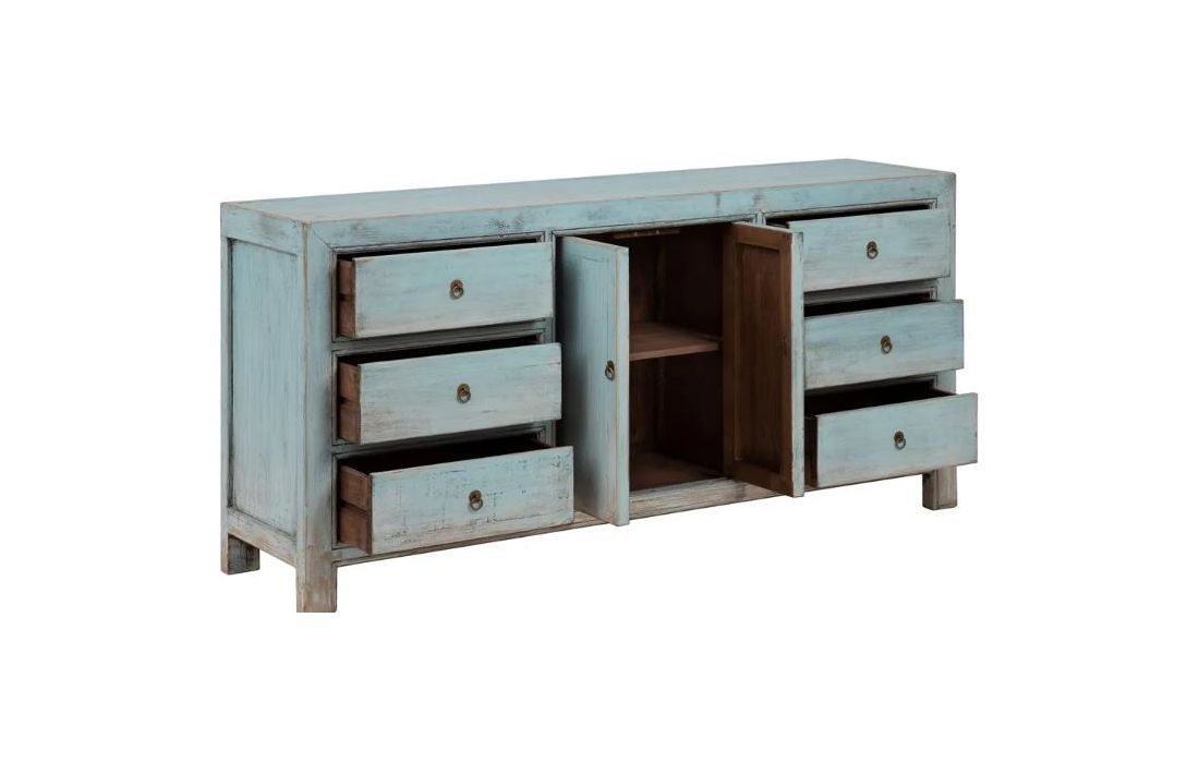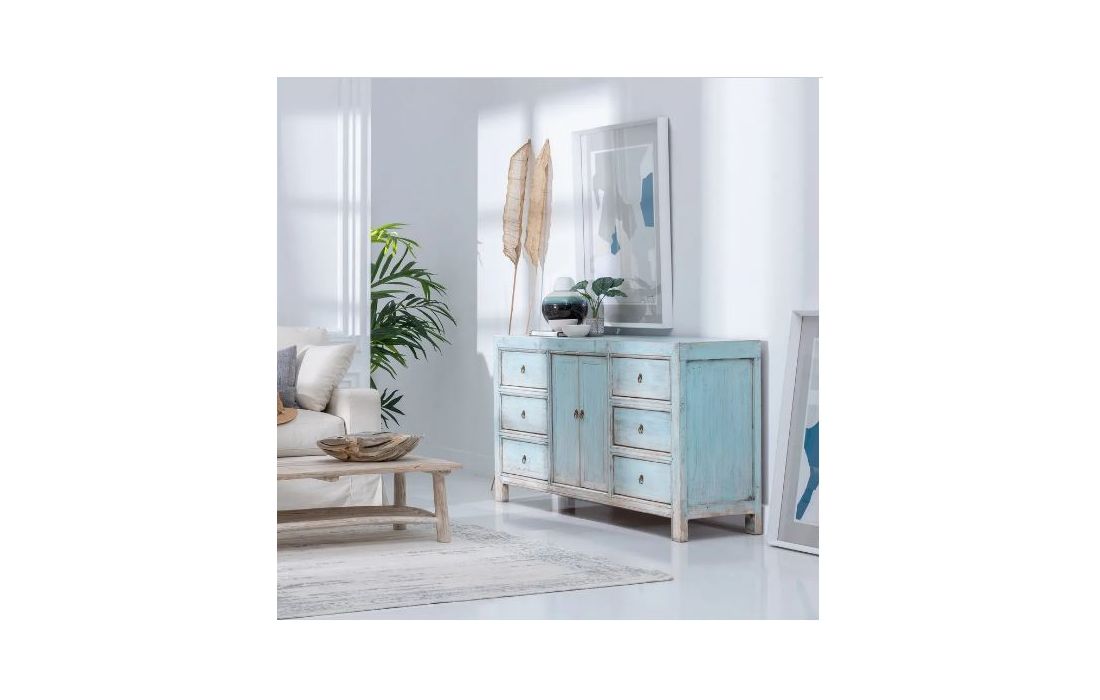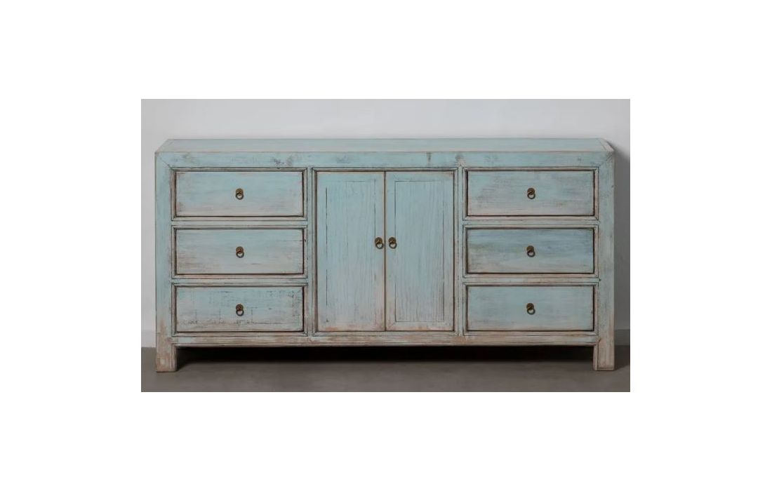 Aparador azul em madeira de pino com 6 gavetas e duas portas.Destinatário :