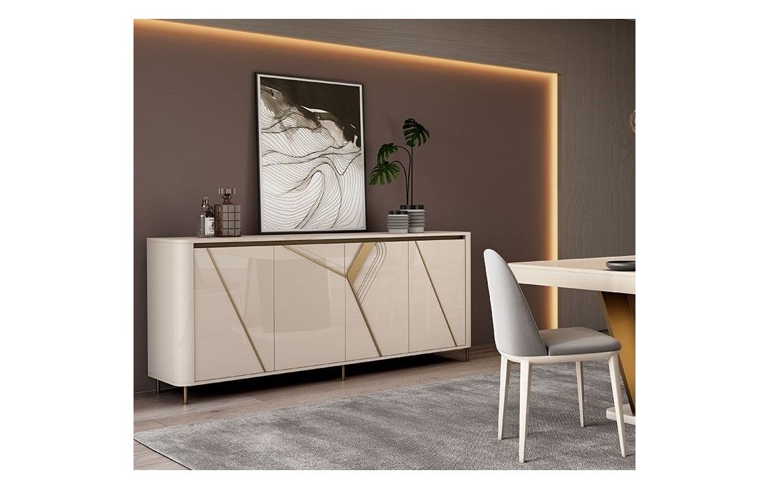 Especificações do Produto MDF, folha de madeira, tecido, inox A abertura da mesa de jantar é ao meio A base da mesa de jantar é em lacado dourado Fazemos qualquer alteração ao produto no entanto fica sujeito a orçamento prévio. Manutenção e Limpeza Limpar com um pano seco Para tirar manchas deve usar um pano húmido e de seguida passar um pano seco Legenda de medidas (C) Comprimento (A) Altura(P) Profundidade