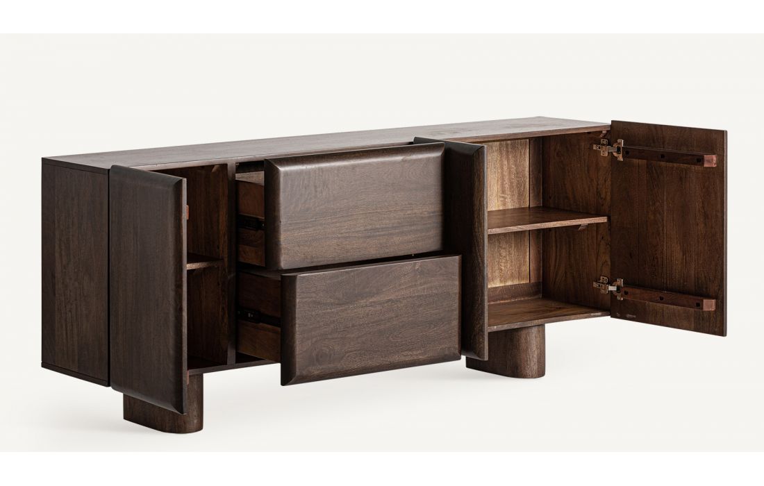 Aparador de 3 portas e 2 gavetas em madeira de manga