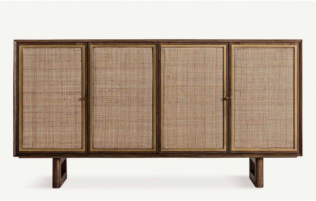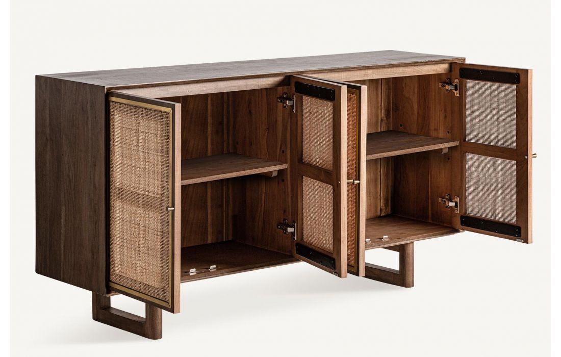 Aparador de 4 portas em madeira de manga cor nartural e palhinha nas portas