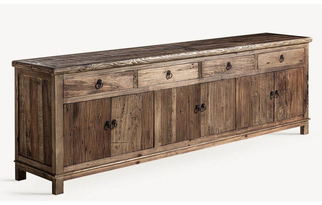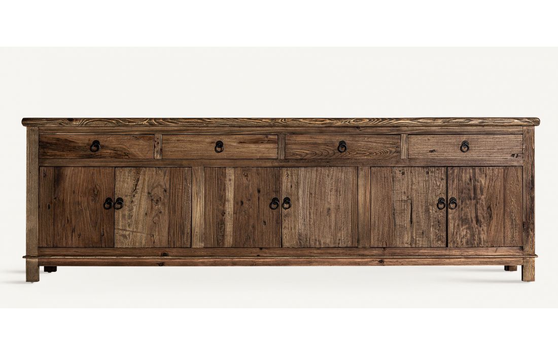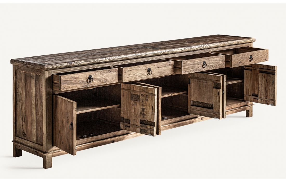 Aparador de 6 portas e 4 gavetas em madeira de olmo cor natural