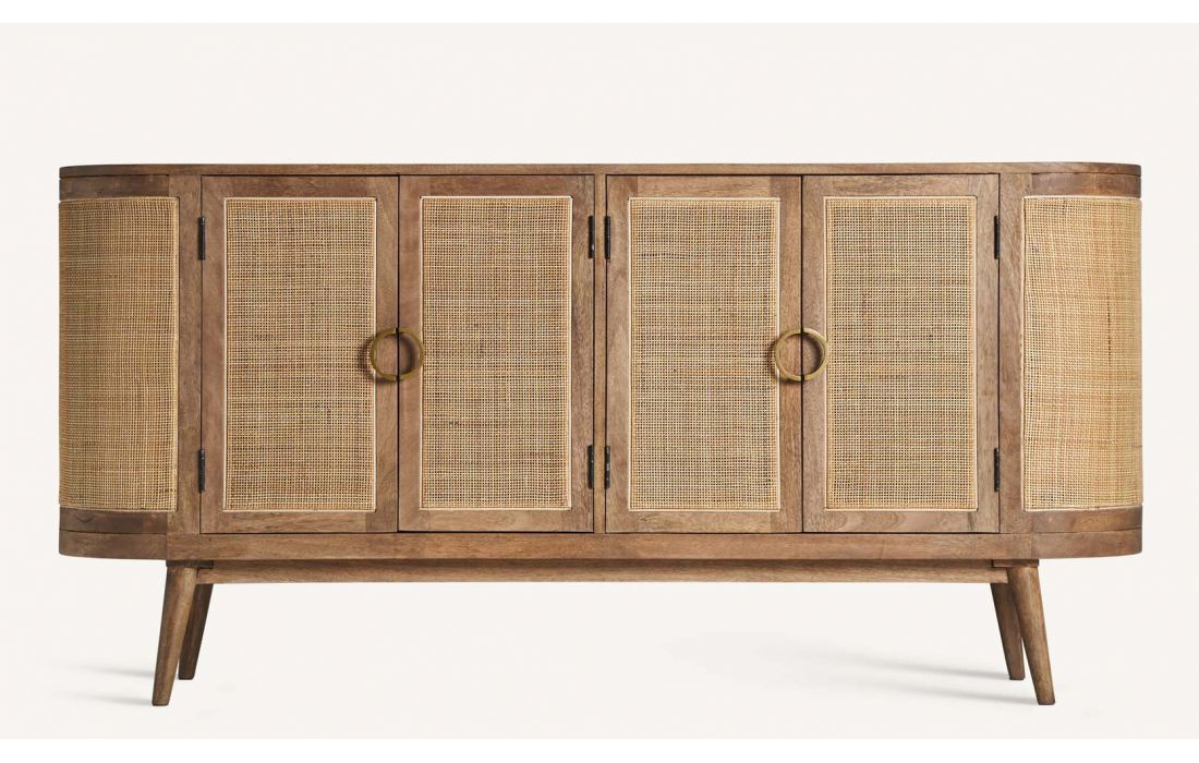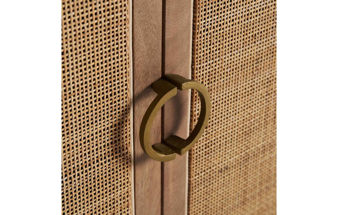 Aparador de 4 portas em madeira de manga e palhinha cor natural