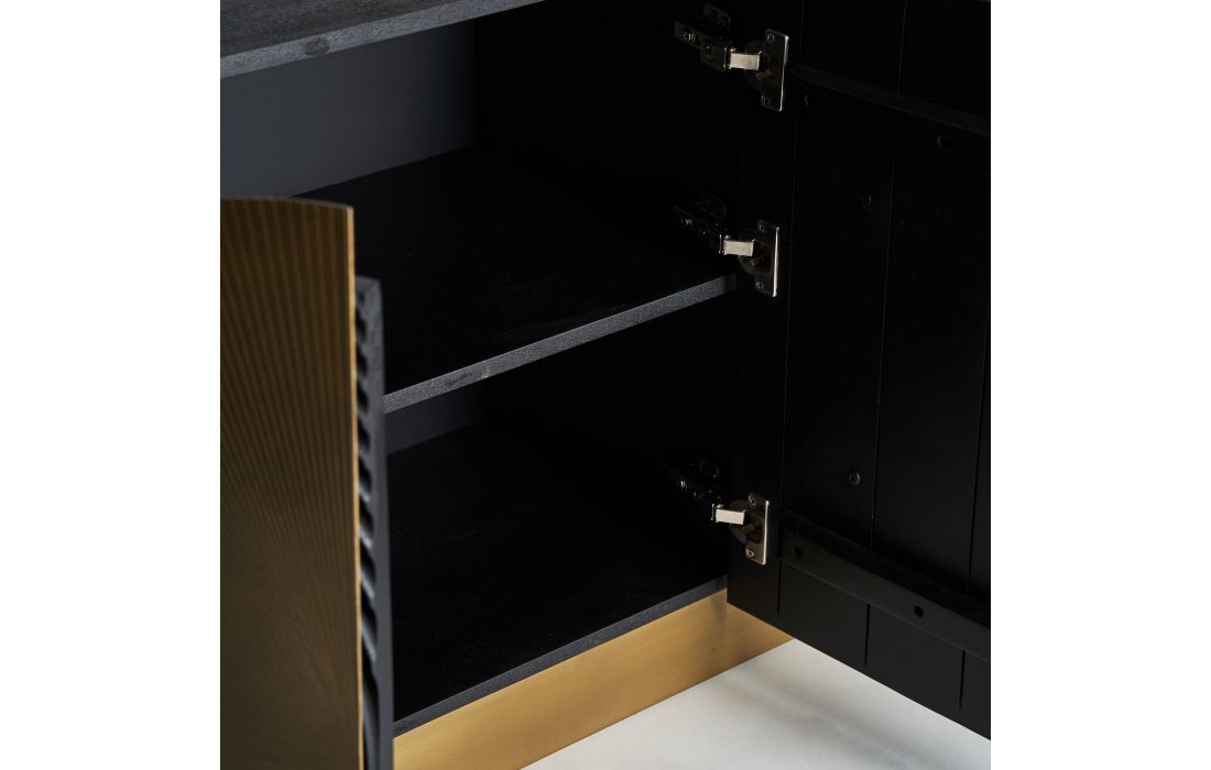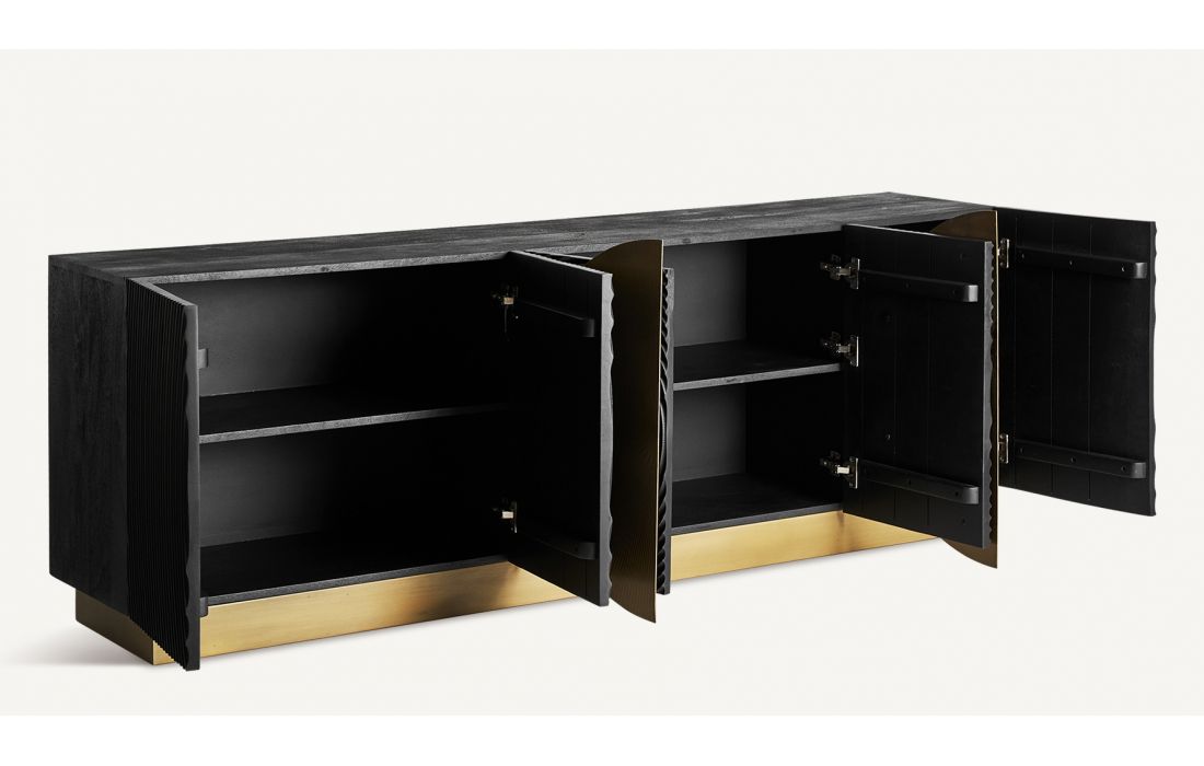 Aparador de 5 portas em madeira de manga e ferro cor preto/dourado
