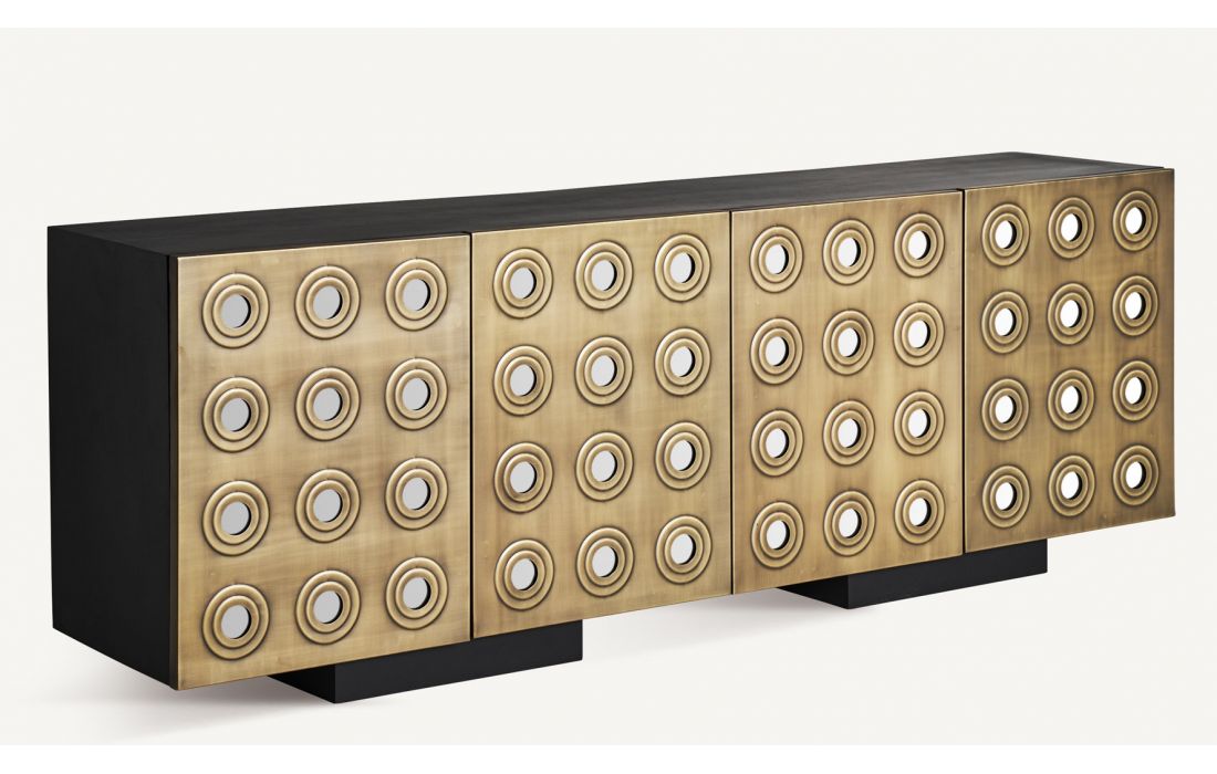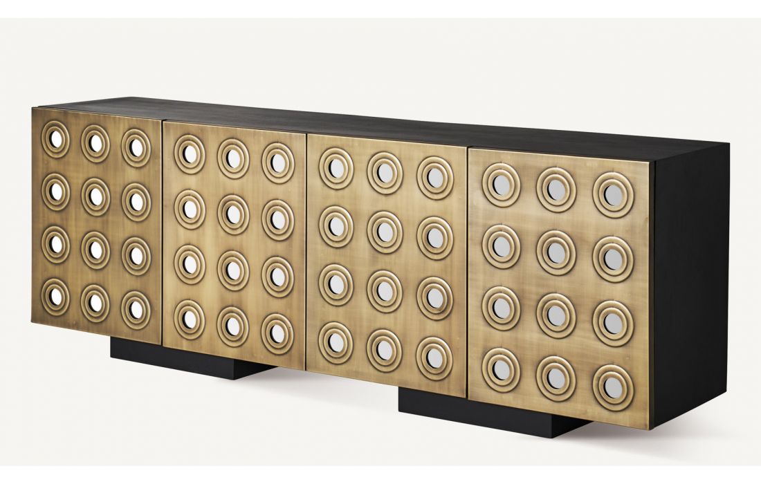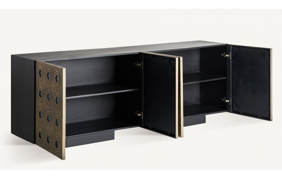 Aparador de 4 portas em madeira de manga e ferro cor preto/dourado