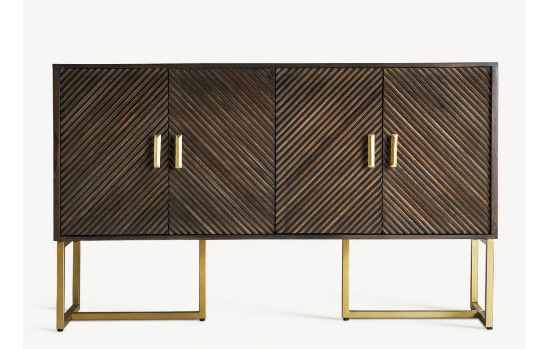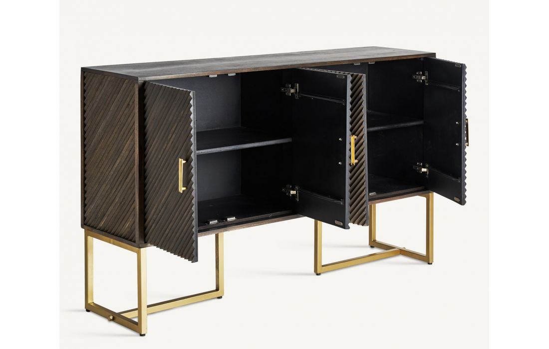 Aparador de 4 portas em madeira de manga e ferro dourado