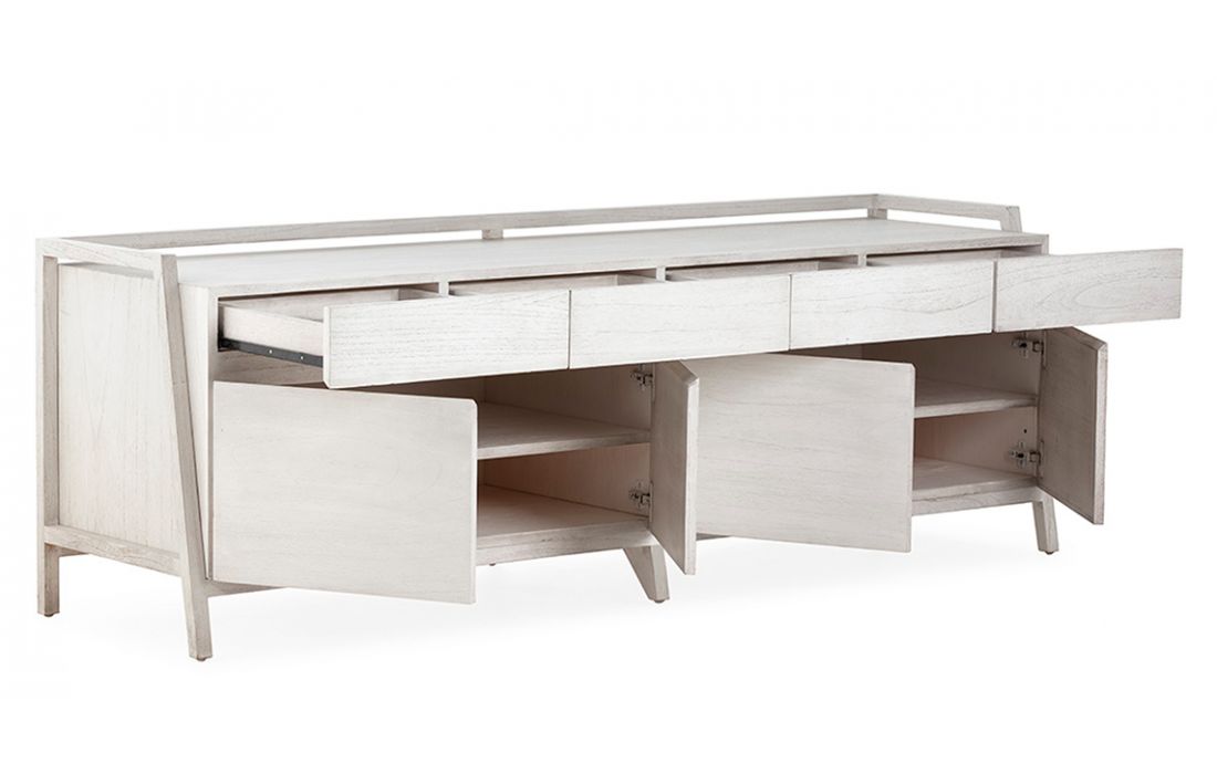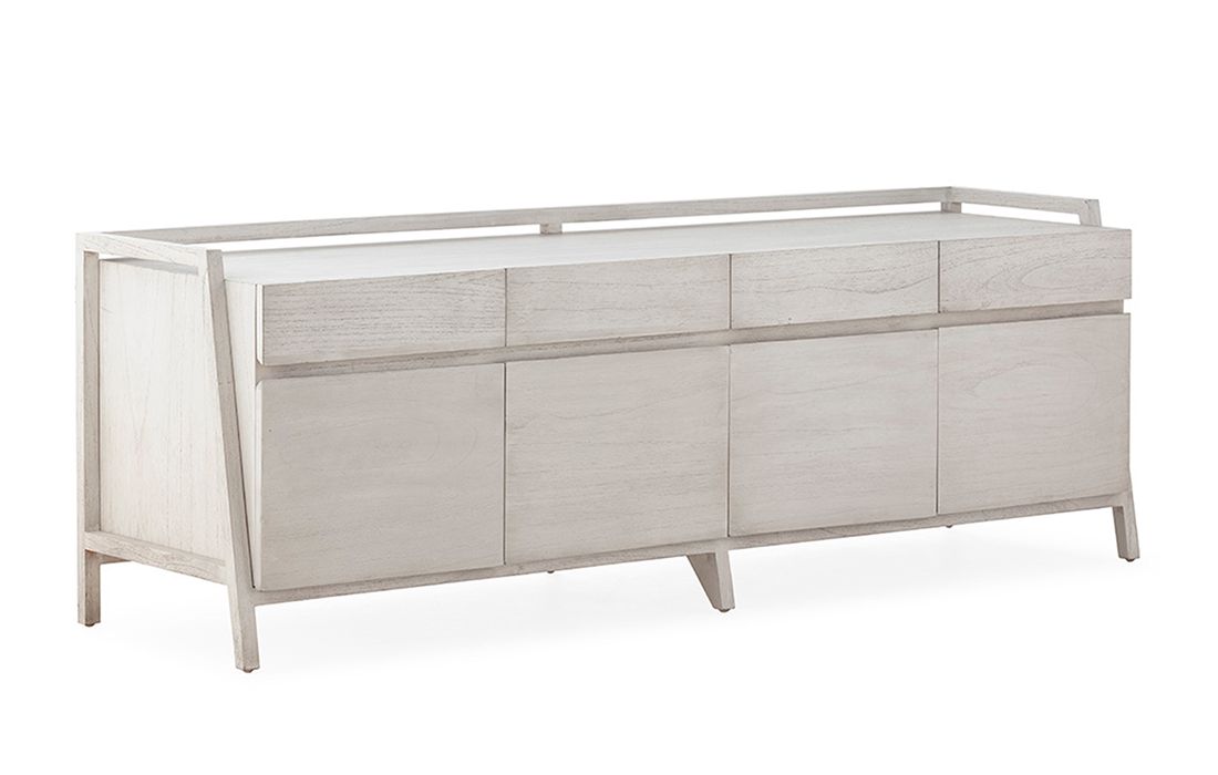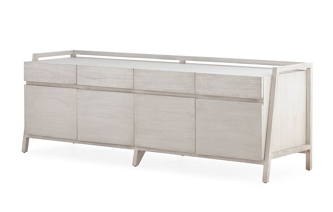 Aparador de 4 portas e 4 gavetas em madeira de cedro cor cinza vendado