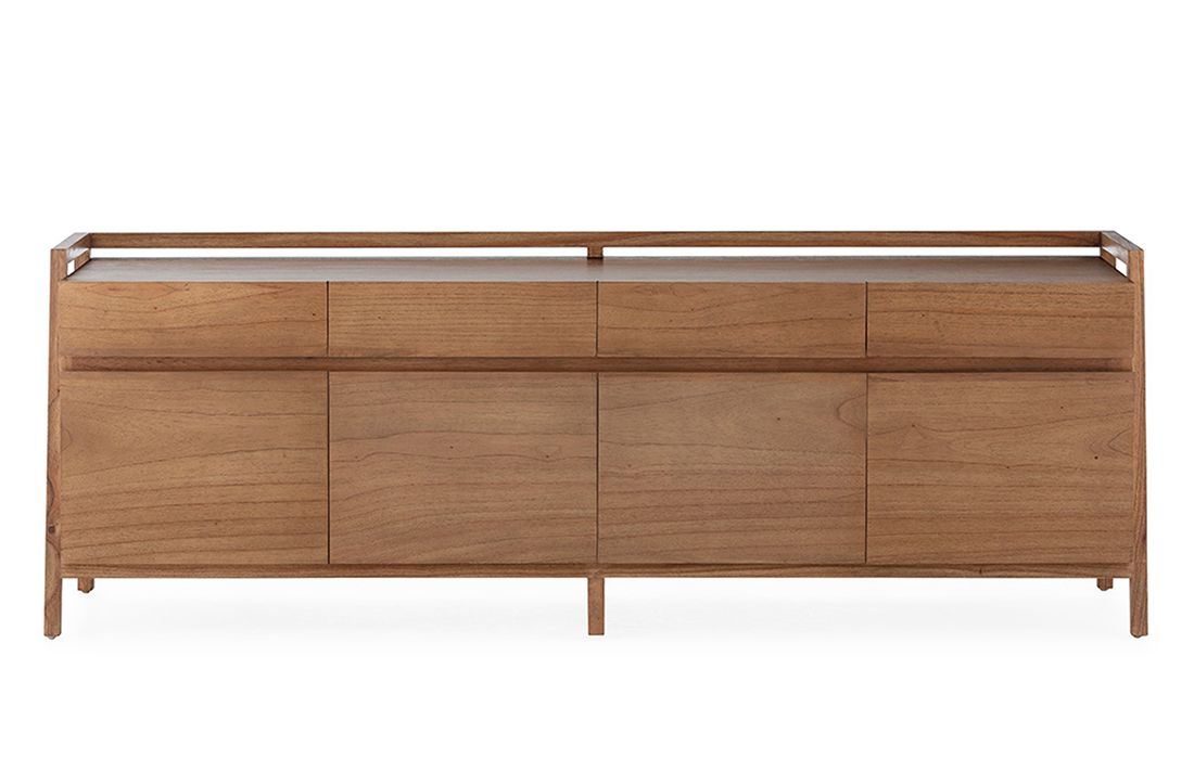 Aparador de 4 portas e 4 gavetas em madeira de cedro cor natural