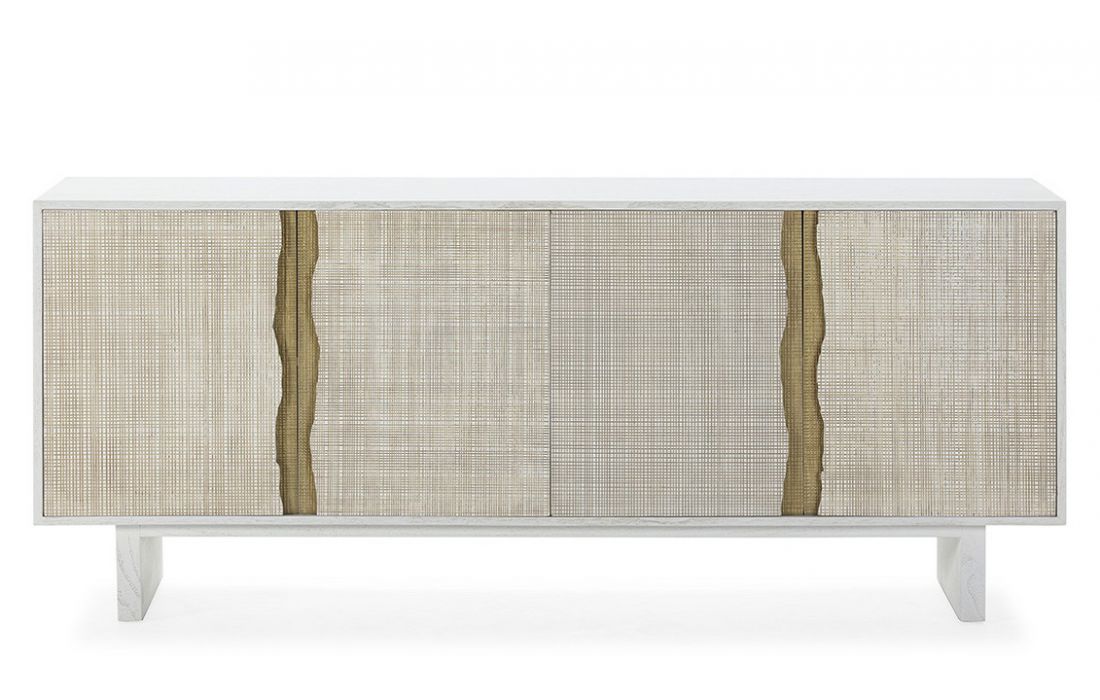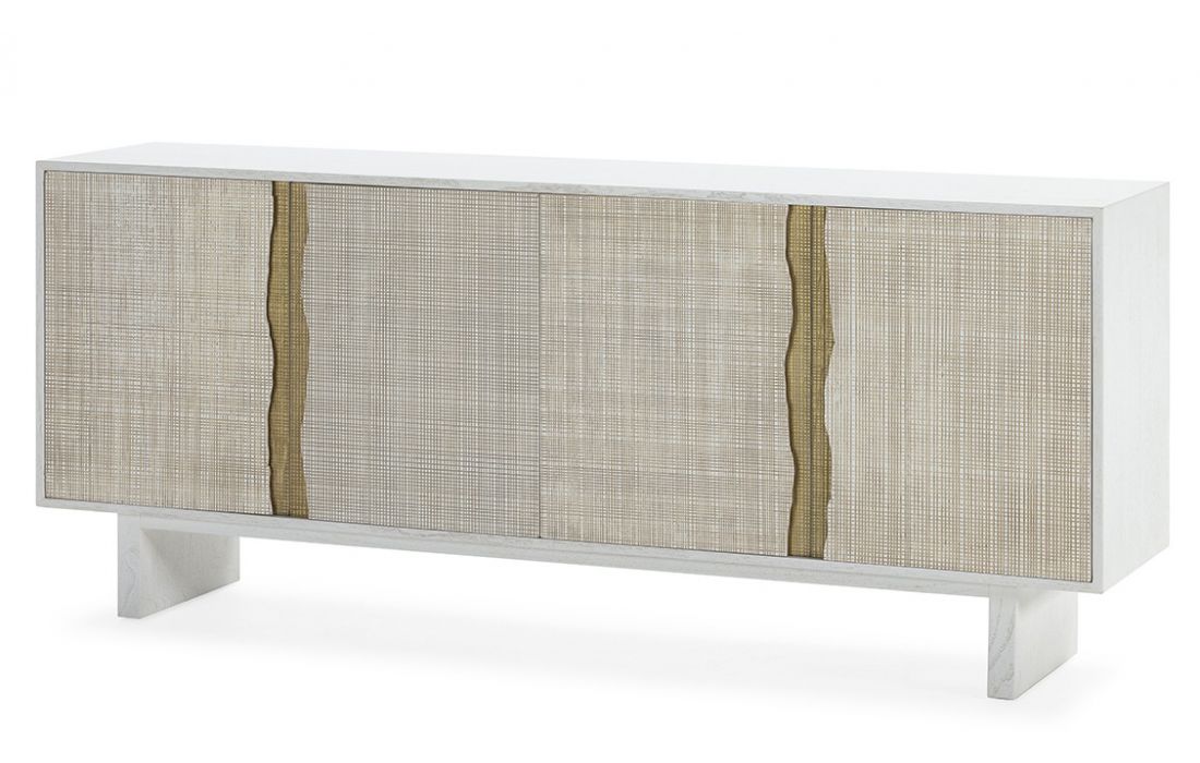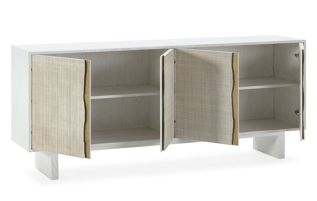 Aparador de 4 portas em madeira de cedro cor branco/dourado