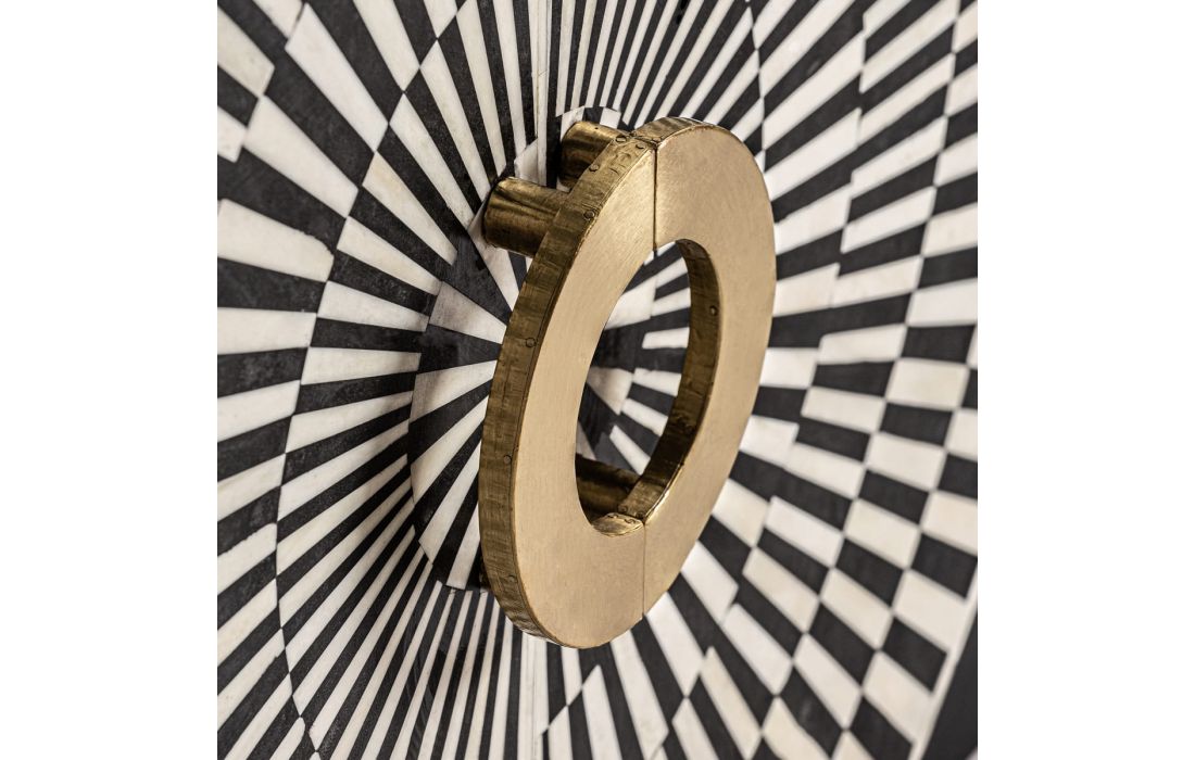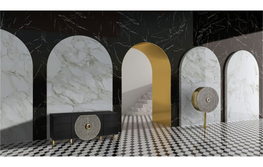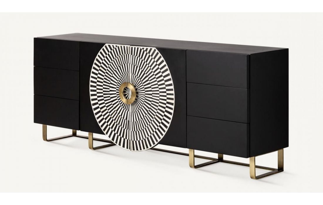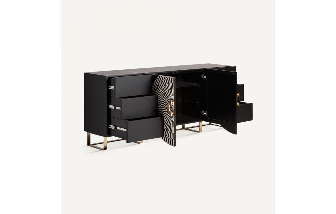 Aparador com estrutura em madeira e detalhes em ferro dourado.