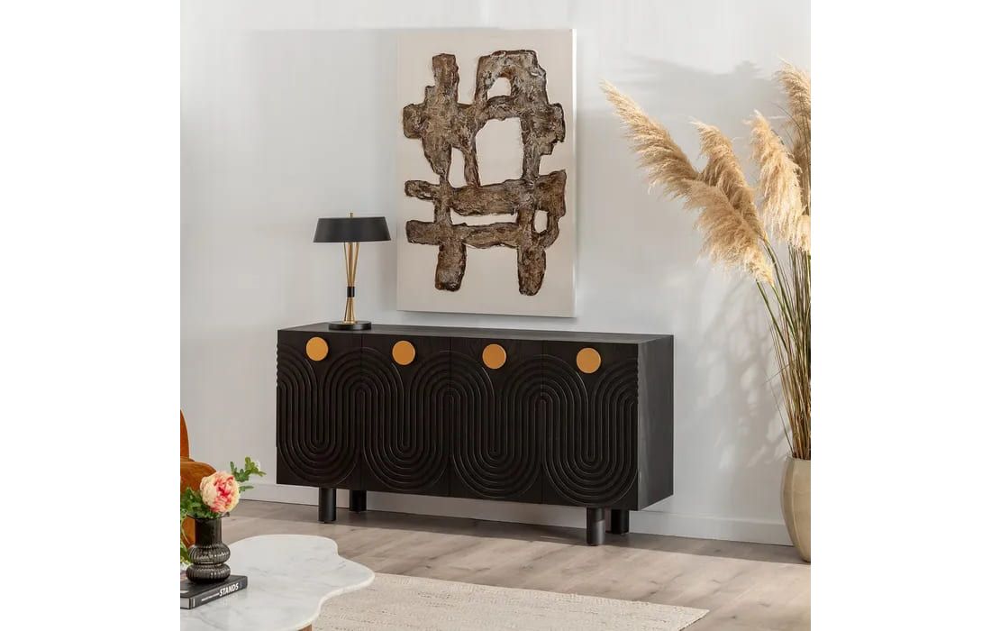 Aparador de 4 portas com estrutura em madeira de abeto e freixo, pés em metal.