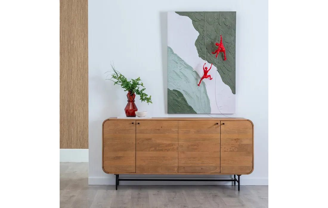 Aparador de 4 portas com estrutura em madeira de mango e ferro.