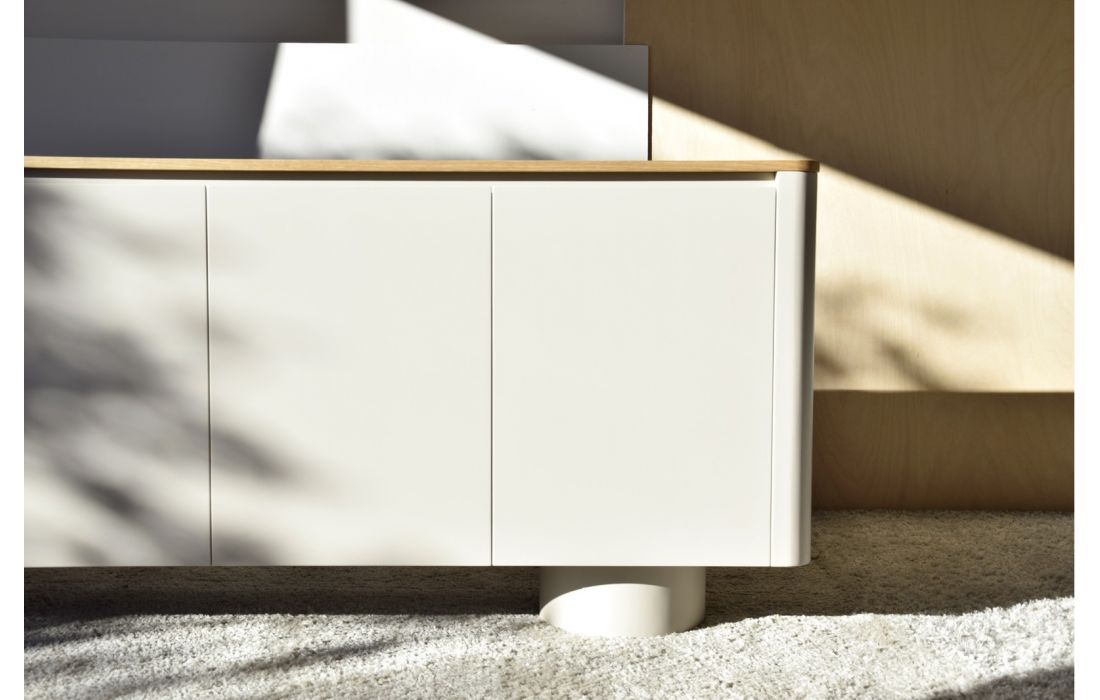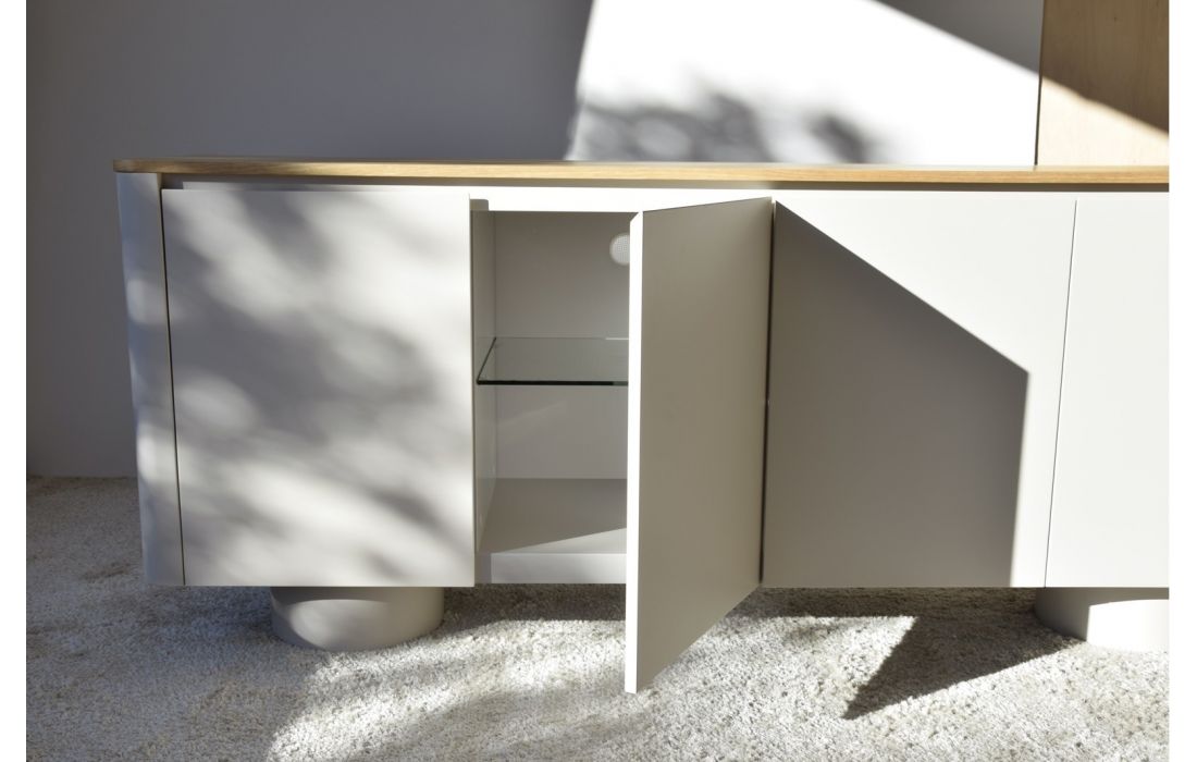 Aparador com estrutura em lacado com tampo em madeira de natural. 2 portas.