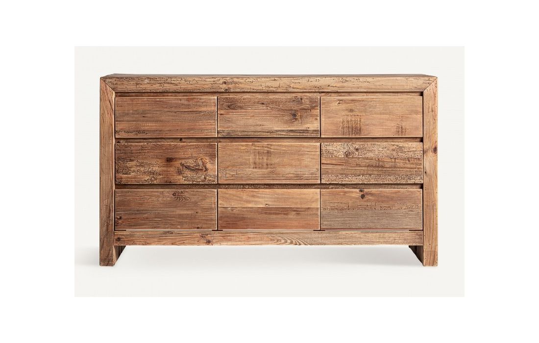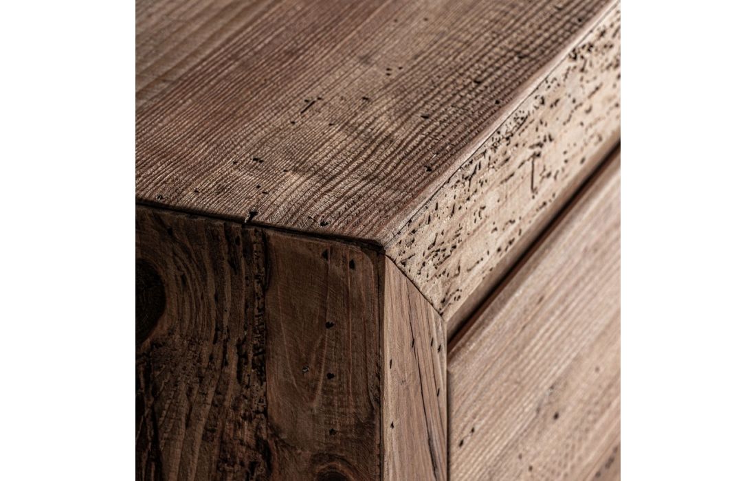 Aparador em madeira de pinho reciclado na cor castanha com acabamento envelhecido
