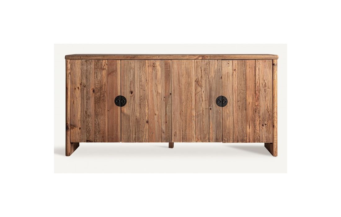 Aparador em madeira de pinho reciclado na cor castanha com acabamento envelhecido