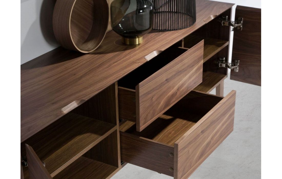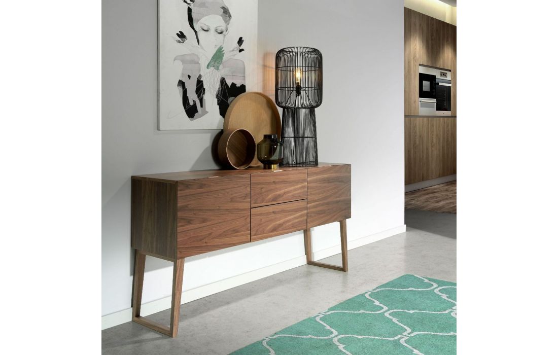 Aparador moderno com estrutura em MDF a nogueira natural e pés em MDF a nogueira natural com 2 gavetas e 2 portasDestinatário :
