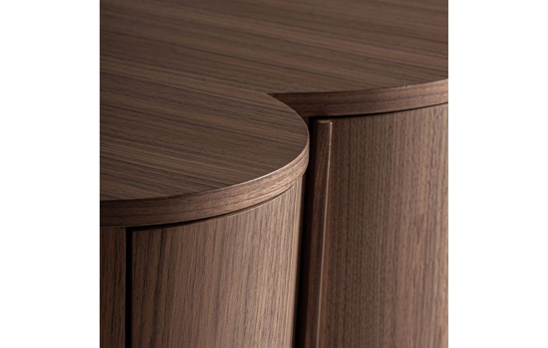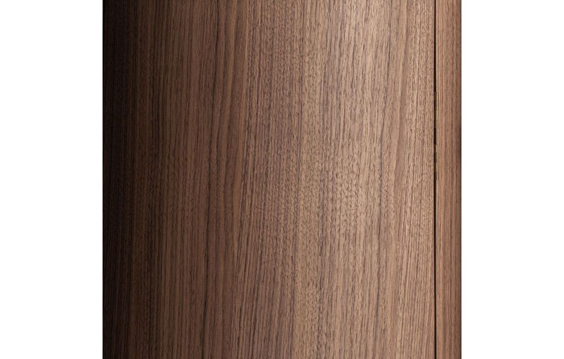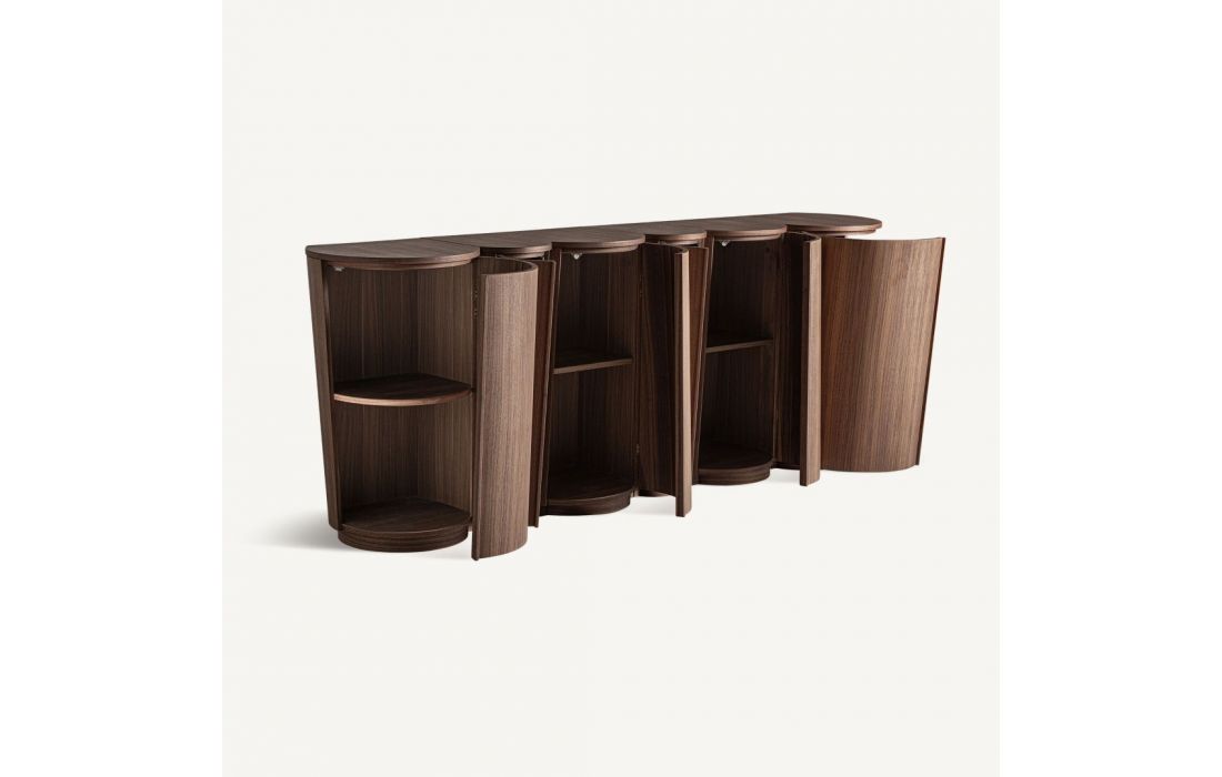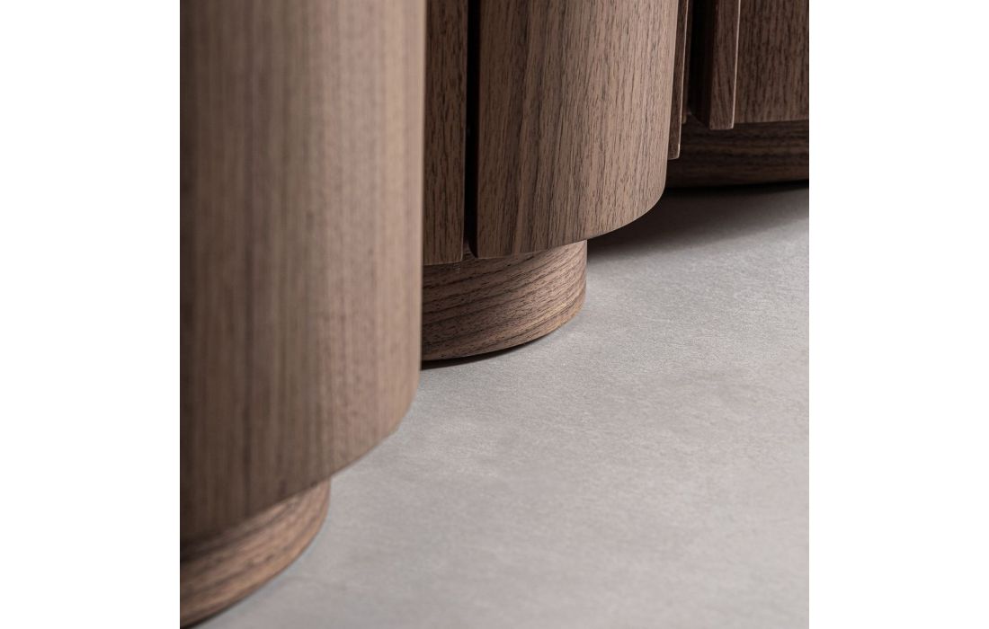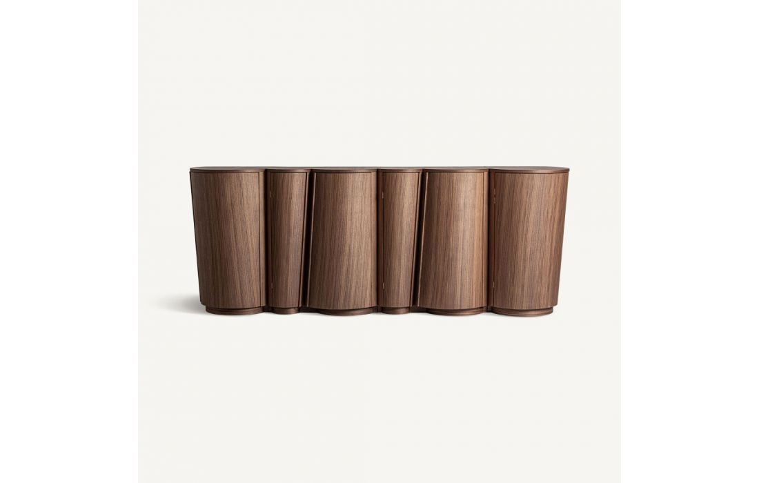 Aparador fabricado em folheado de nogueira e MDF, destaca-se pelo seu acabamento natural e design linearDestinatário :