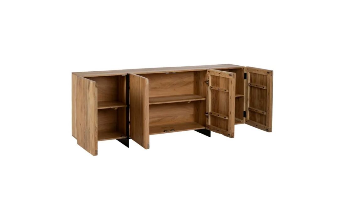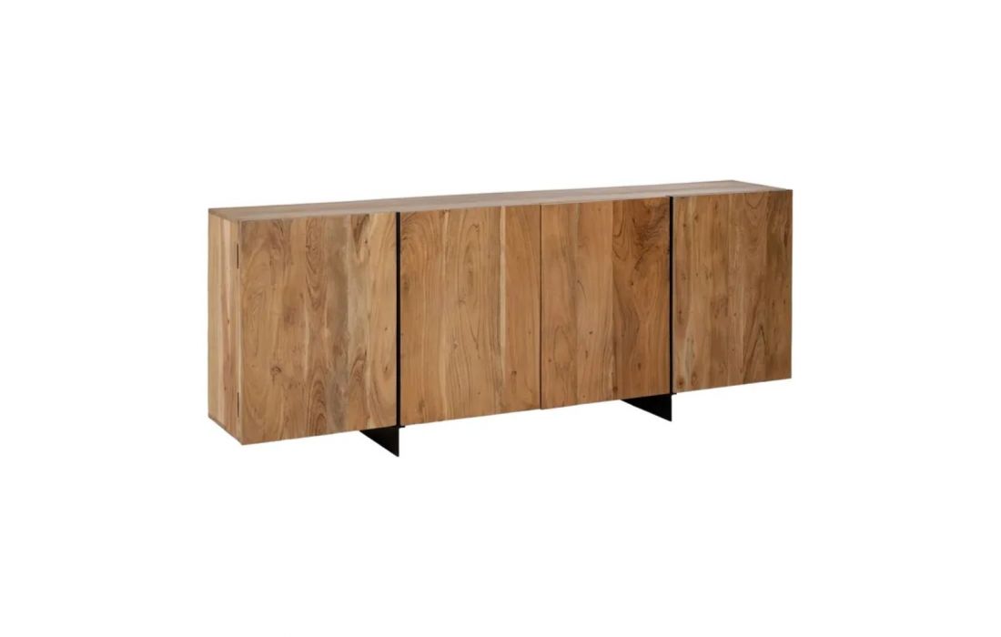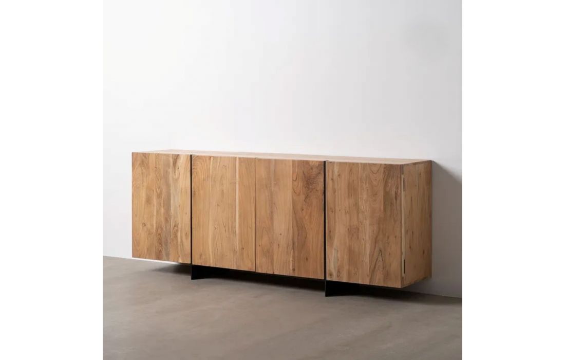 Aparador de design moderno em madeira de acácia com pés em ferro, apresenta linhas retas e limpas e tem 4 portasDestinatário :