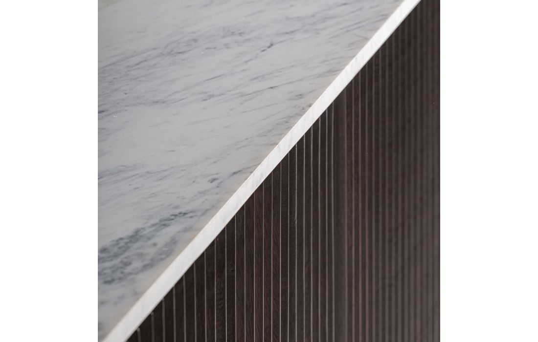 APARADOR KALEH em estilo art déco, feito de madeira, combinado com mármore branco com um acabamento com veias.Destinatário :