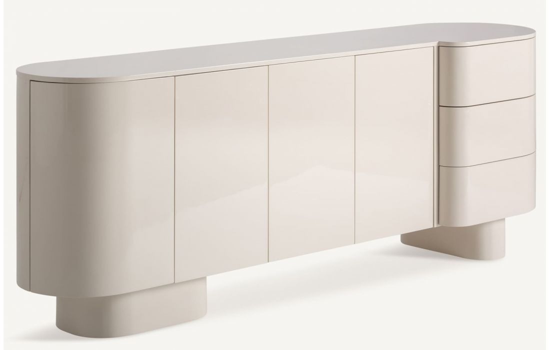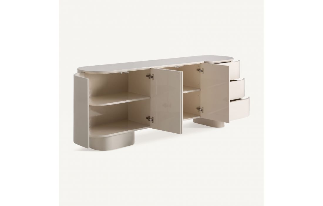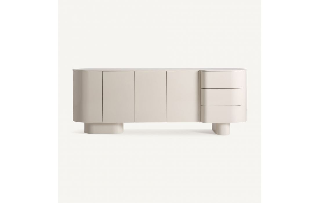 O APARADOR HATON destaca-se pelo seu design contemporâneo e acabamento branco quebrado. Suas linhas suaves e estrutura equilibrada preenchem o espaço com calma e pureza estética.Destinatário :