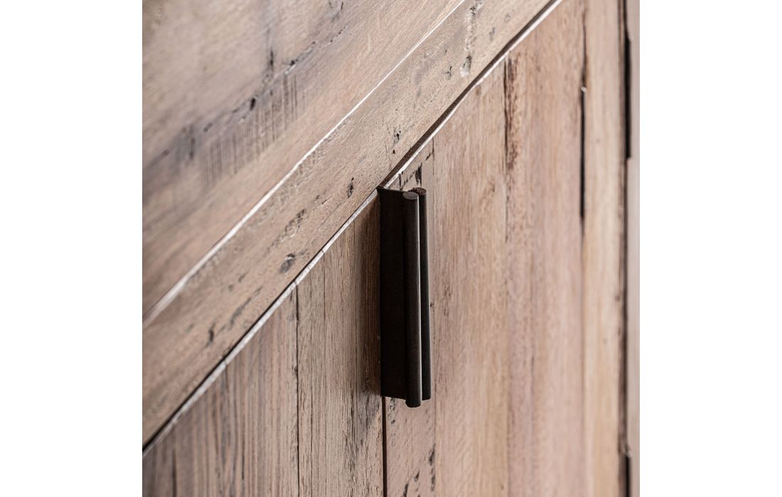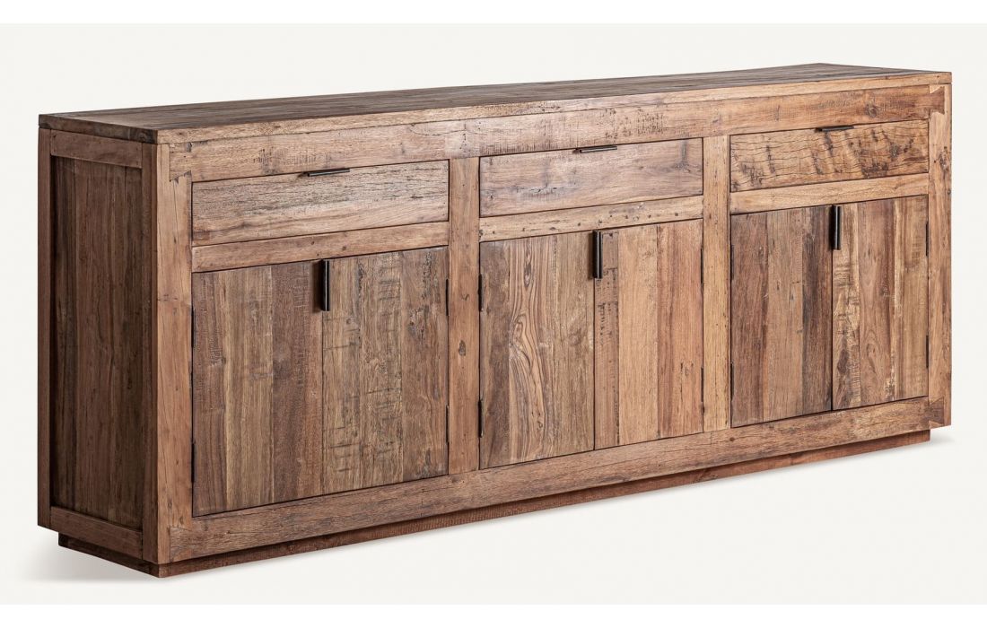 O APARADOR SELBY, em madeira recuperada combinado com ferro, uma peça rústica com caráter, textura e presença visual.Destinatário :