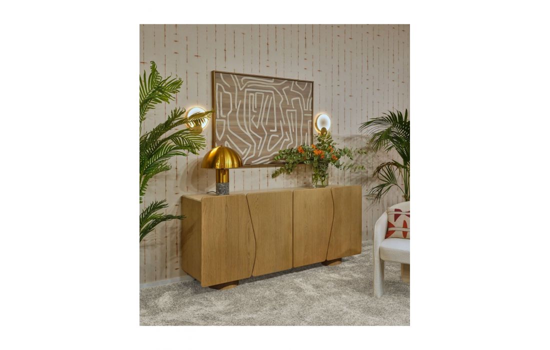 O APARADOR DRESDEN em madeira de carvalho é uma peça que se destaca por seu design exclusivo. Suas portas irregulares, com um corte original, são a principal característica que lhe confere uma personalidade distinta. O envelope de pedra complementa perfeitamente o todo, proporcionando um toque de sofisticação.Destinatário :