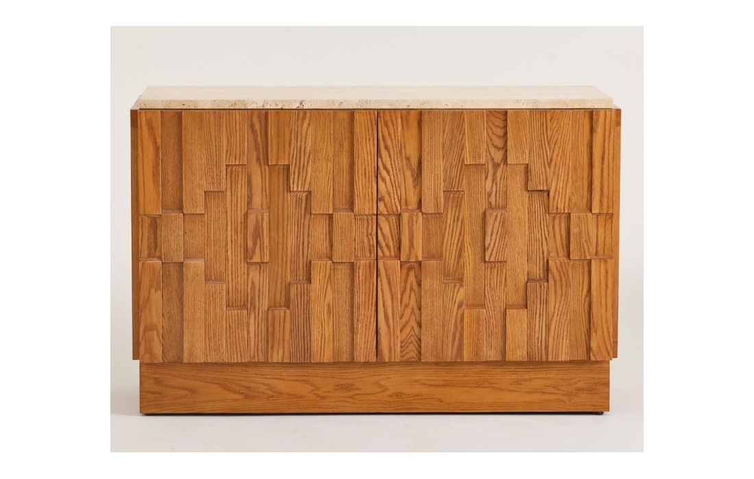 O APARADOR KAYRA de design contemporâneo feito de madeira esculpida, com um acabamento e uma geometria cuidadosa em relevo que traz caráter e profundidade visual. Seu envelope de mármore de travertino introduz um contraste elegante e natural.Destinatário :
